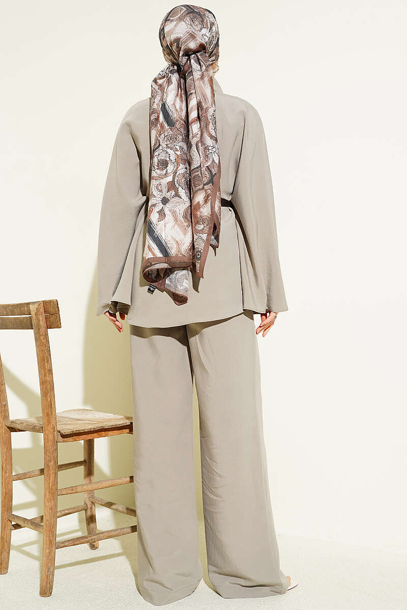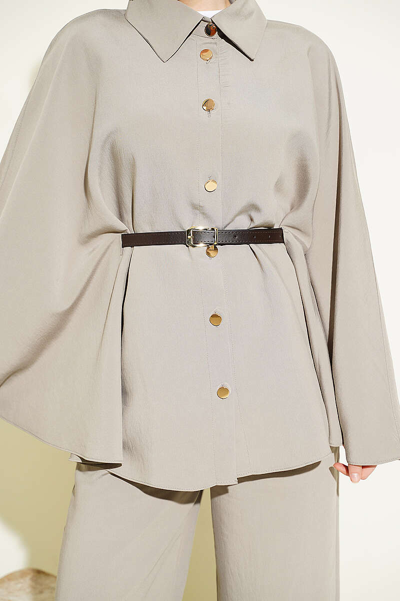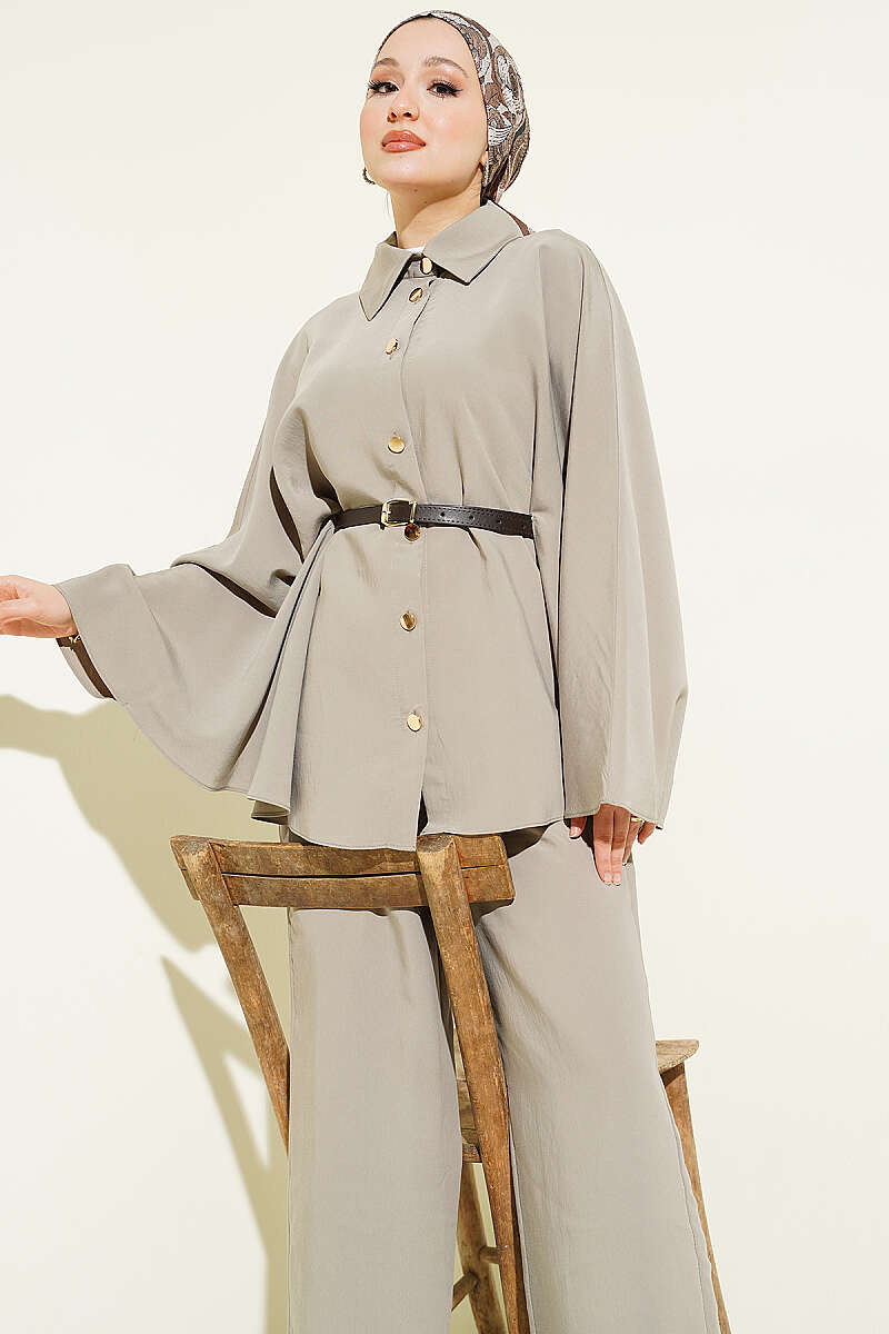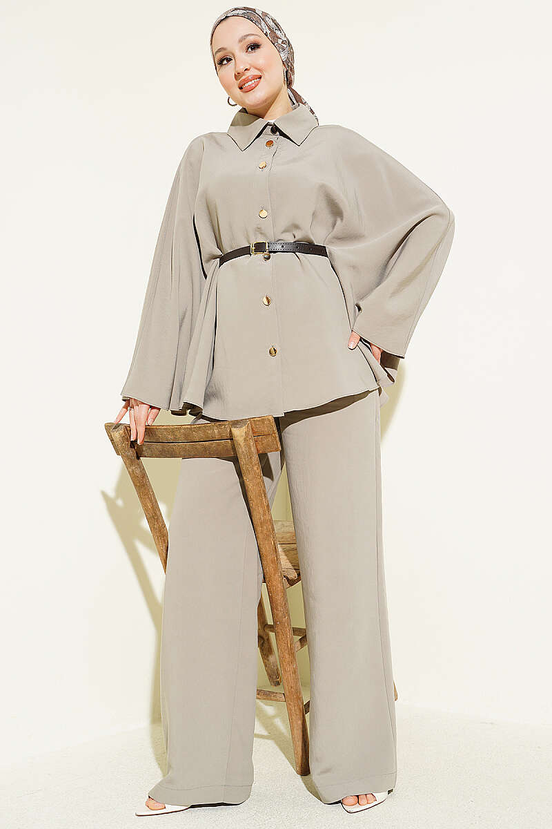 Gold Düğmeli Tensel Panço Takım Vizon