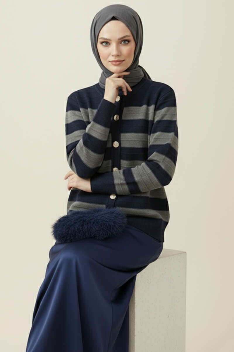 Gold Düğmeli Triko Kısa Hırka Lacivert
