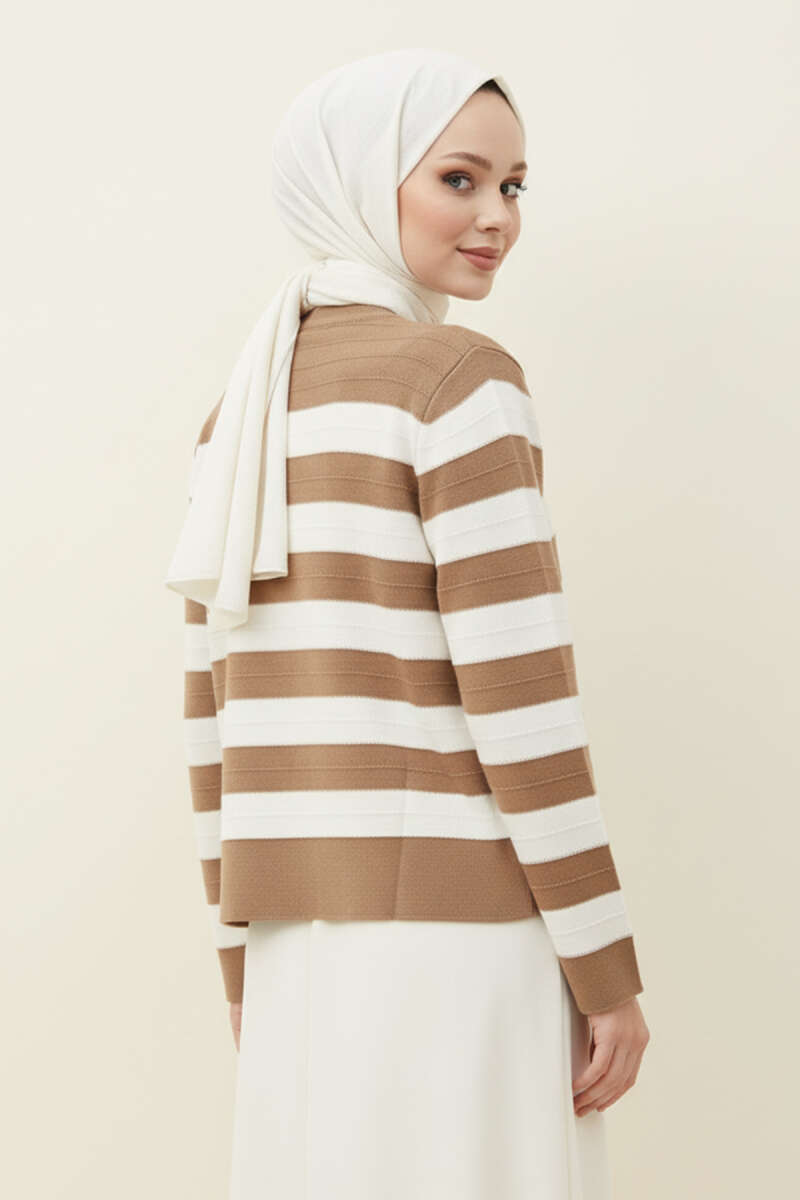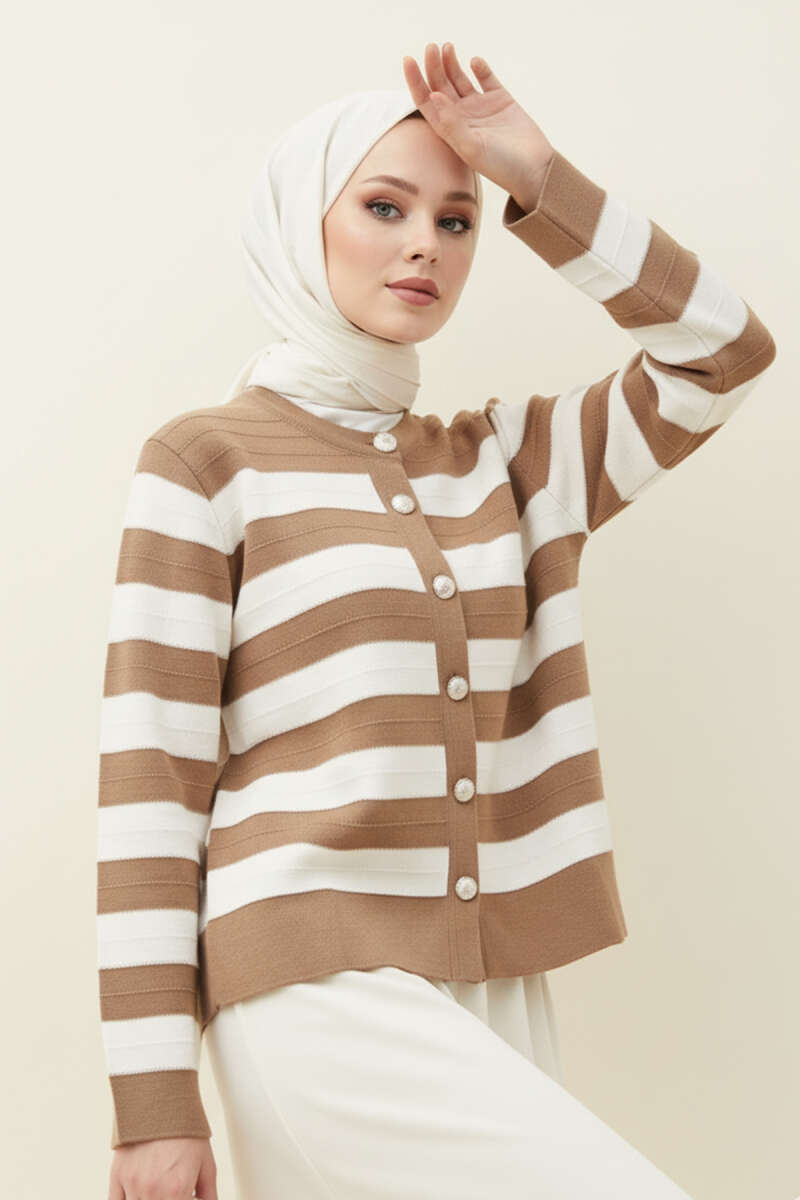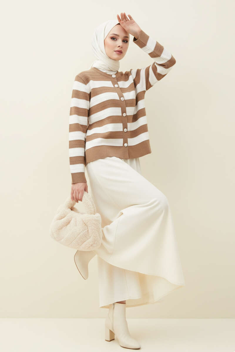 Sakallı Düğmeli Hırka Bej