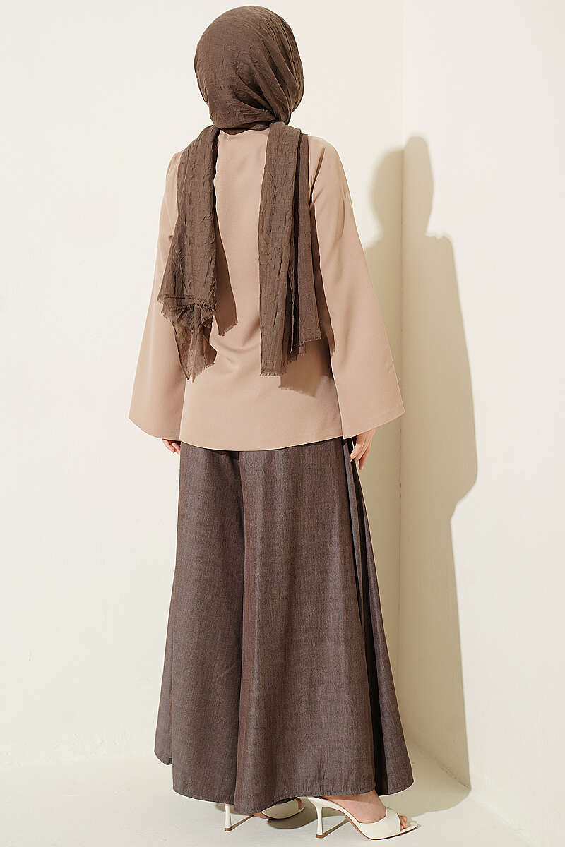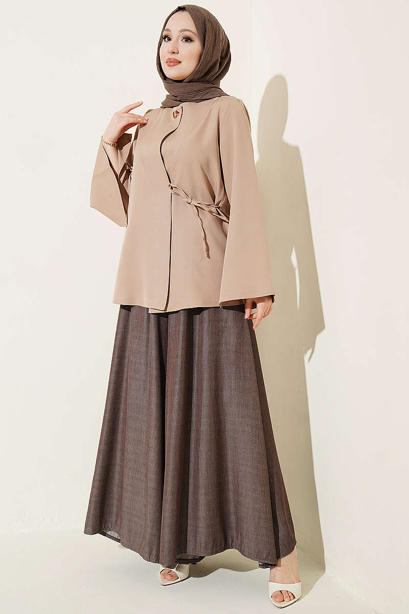 Gold Düğmeli Yan Bağlamalı Kimono Kahve