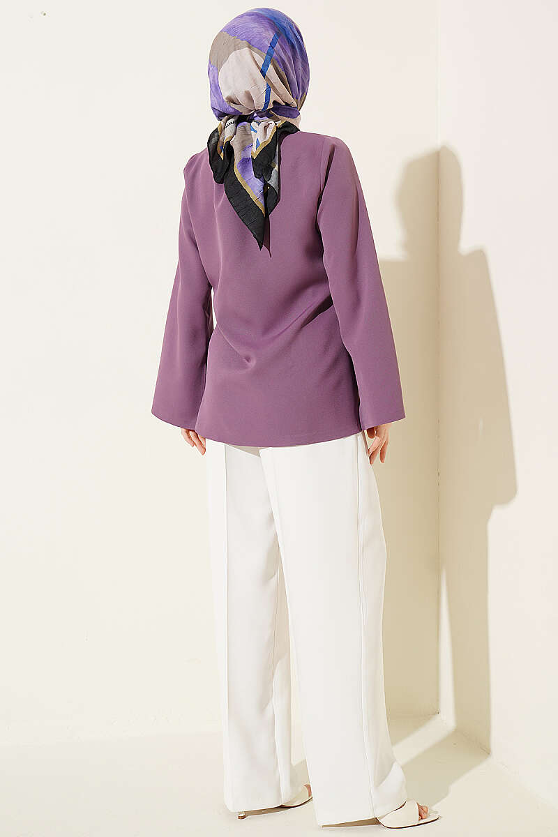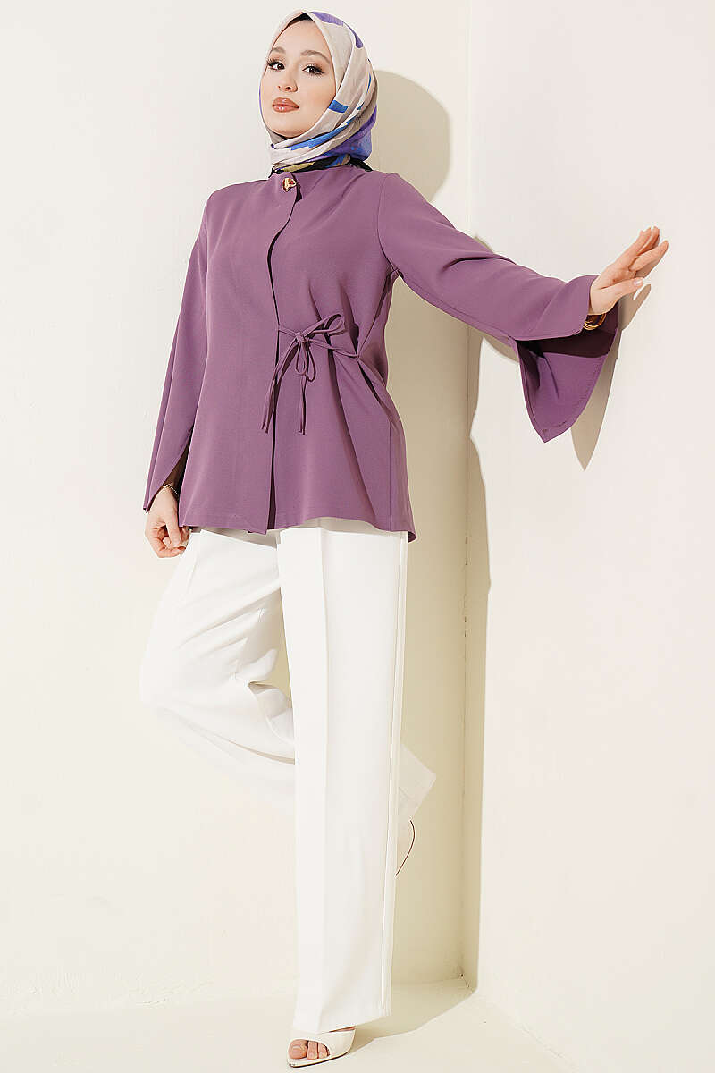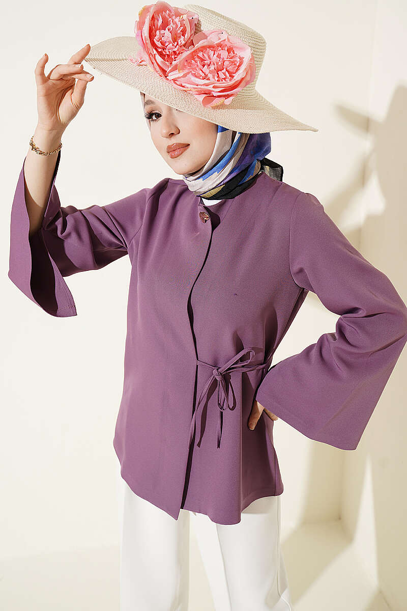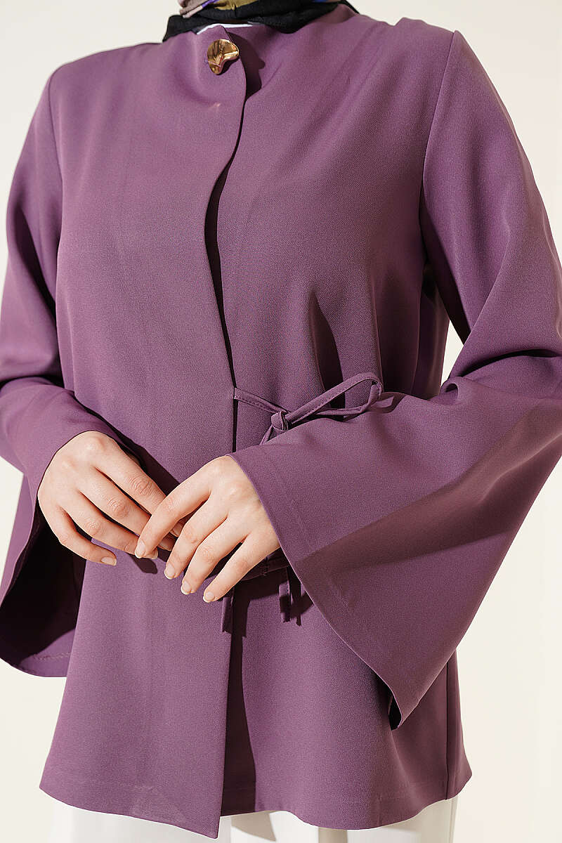 Gold Düğmeli Yan Bağlamalı Kimono Lila