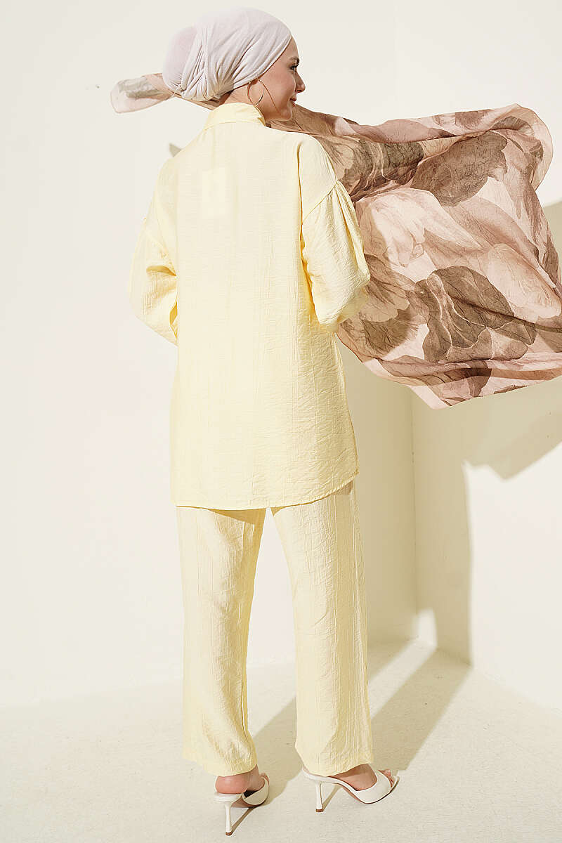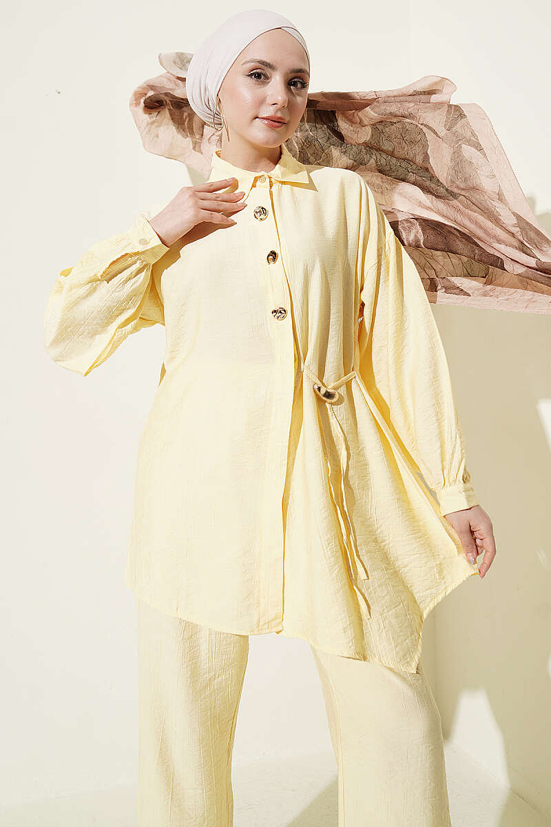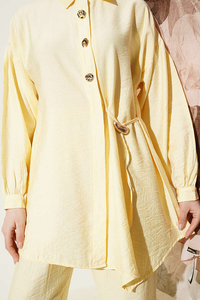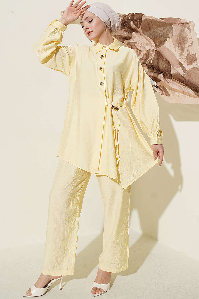Gold Düğmeli Yan İp Bağcıklı İkili Takım Sarı