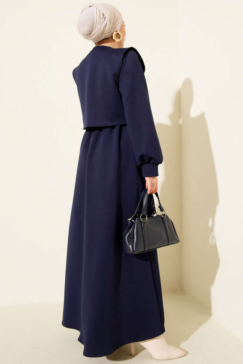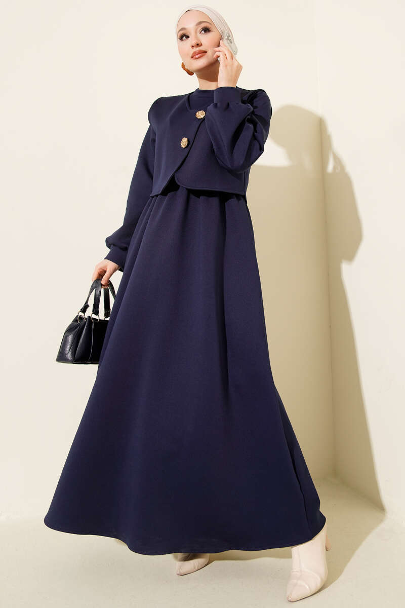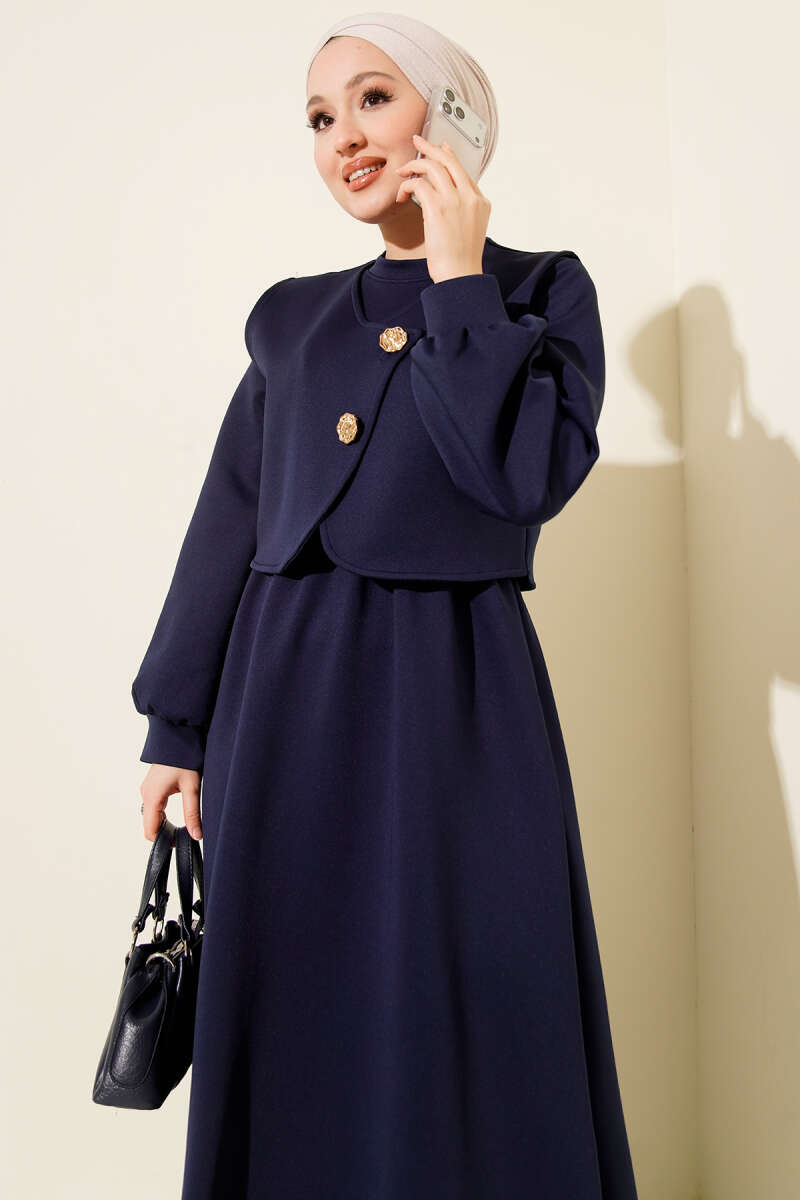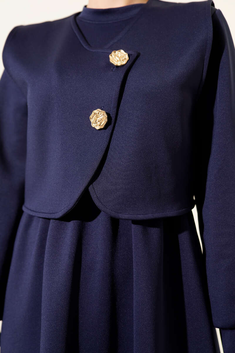 Gold Düğmeli Yelekli Elbise Takım Lacivert