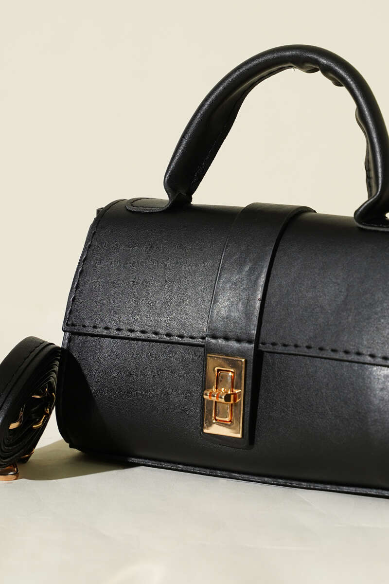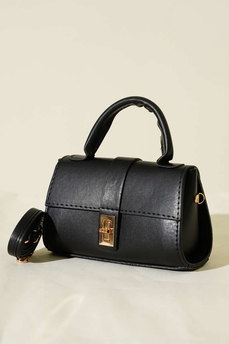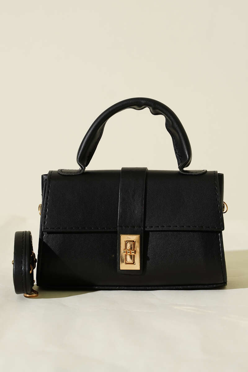 Gold Kilitli Mini Kadın El Çantası Siyah