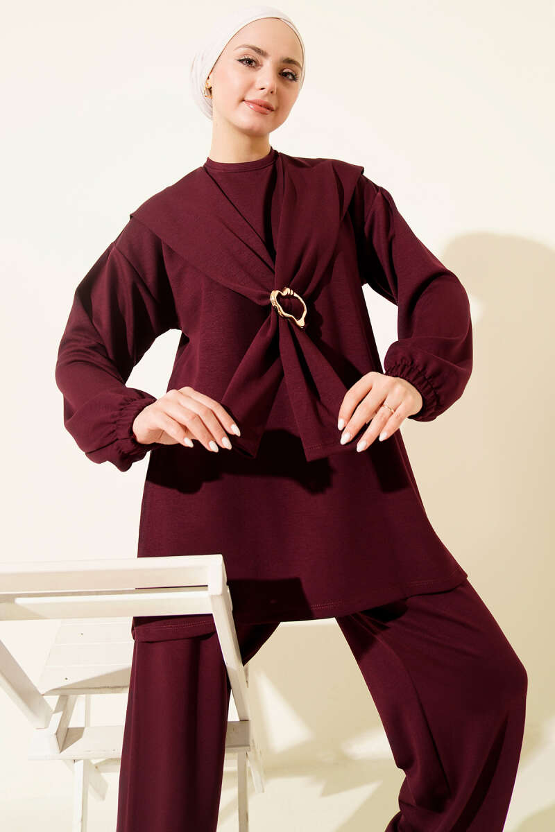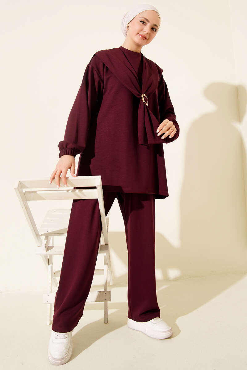 Biyeli Armalı Loyşa İkili Takım Bordo