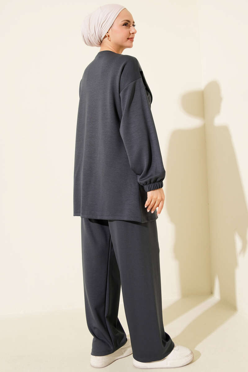 Yan Bağlamalı Kadife Fitilli İkili Takım Petrol Yeşili