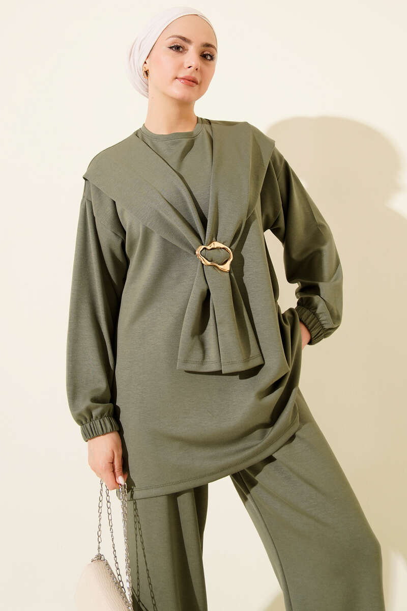 Çıtçıtlı Kapüşonlu Scuba Yelek Takım Latte