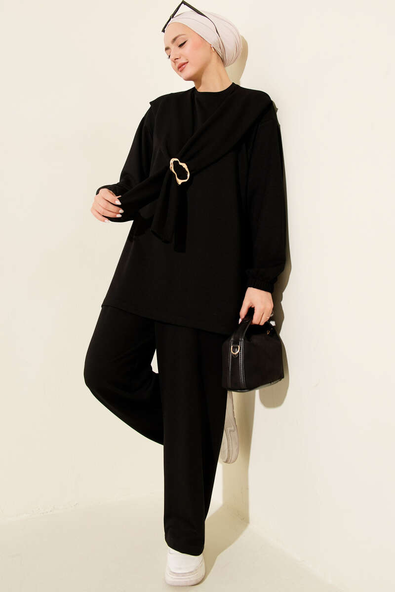 Gold Tokalı Atkılı Loyşa İkili Takım Siyah
