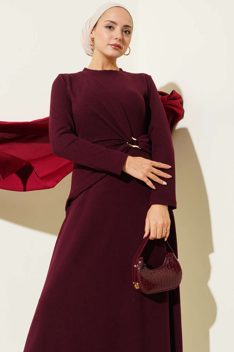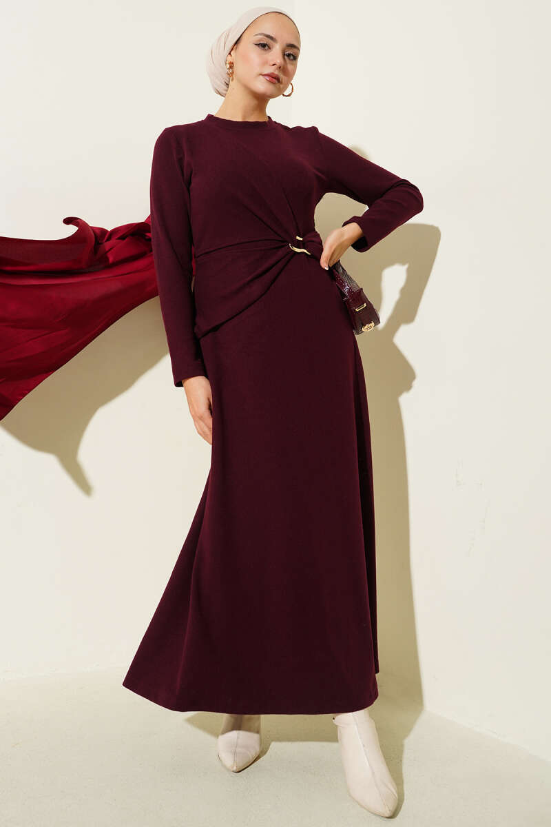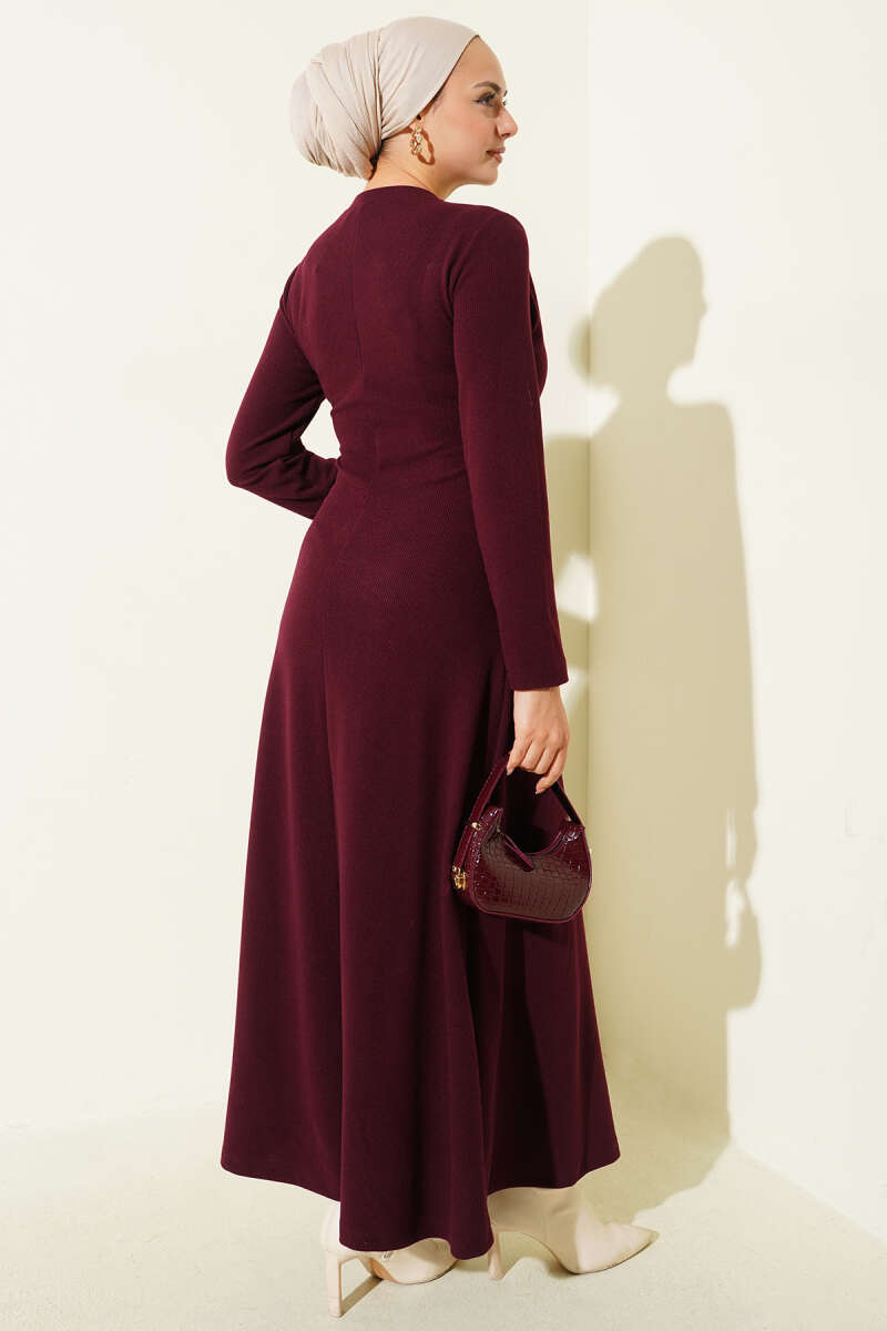 Yaka Parça Detaylı Abiye Elbise Bordo