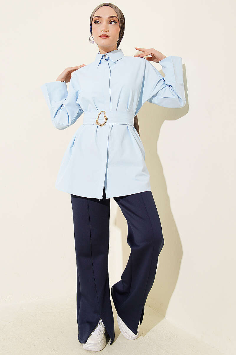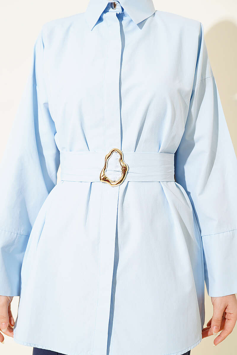 Gold Tokalı Gizli Düğmeli Gömlek Bebe Mavi