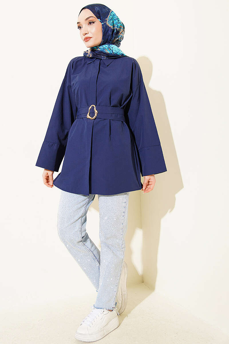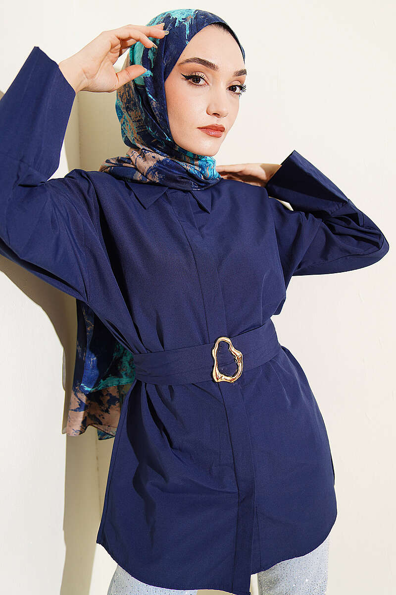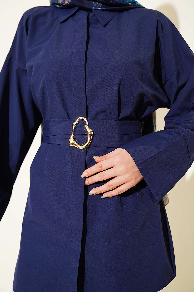 Gold Tokalı Gizli Düğmeli Gömlek Lacivert