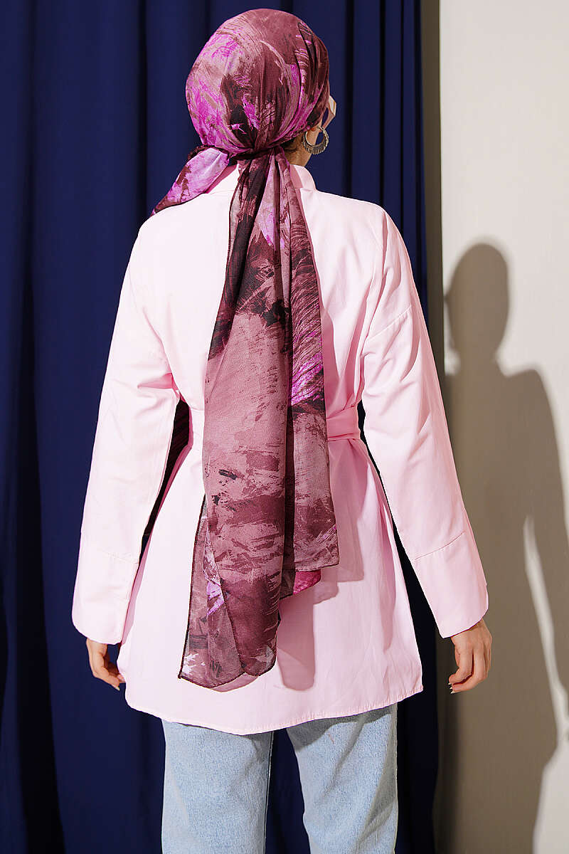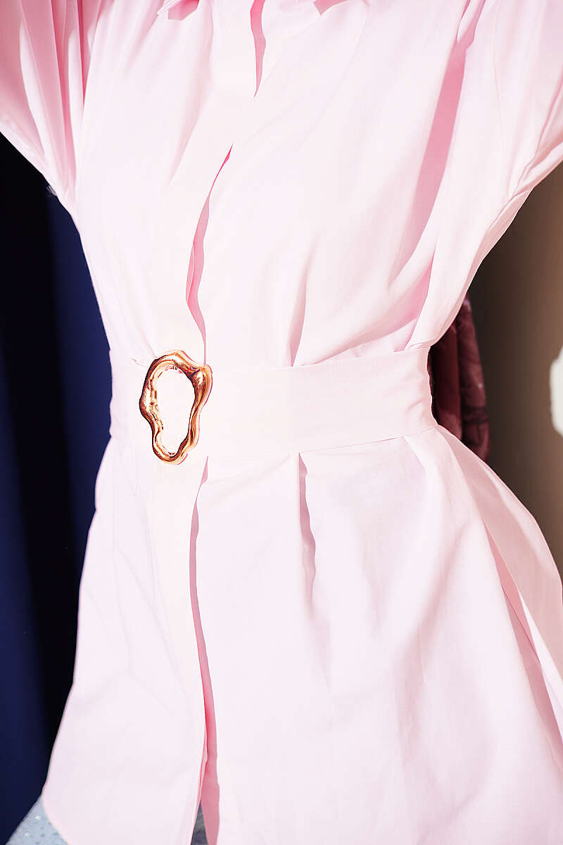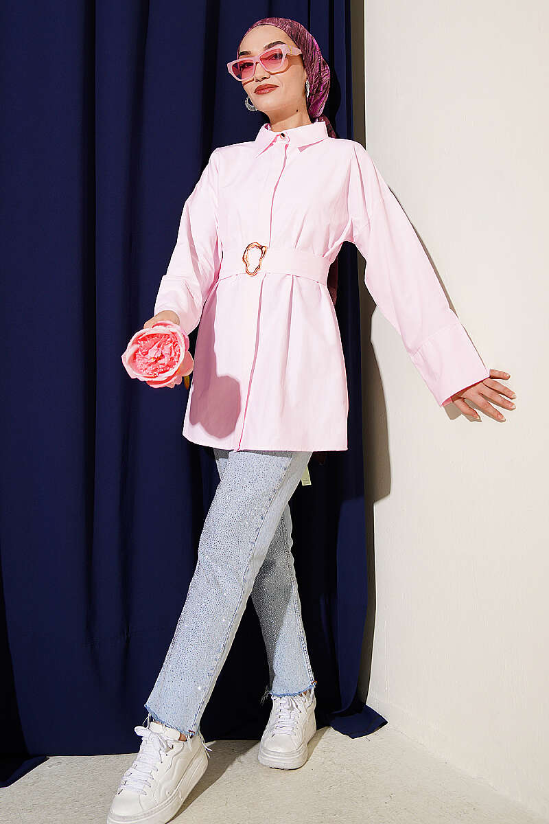 Gold Tokalı Gizli Düğmeli Gömlek Pembe