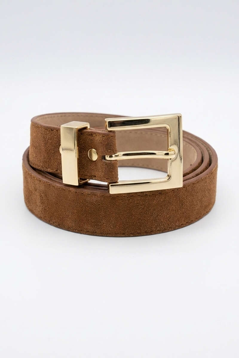 Gold Tokalı Klasik Kemer Taba Süet