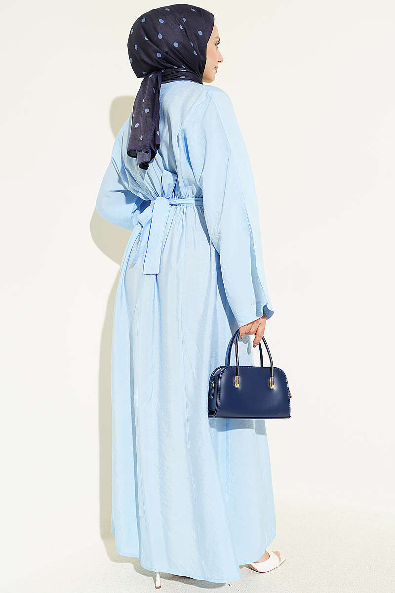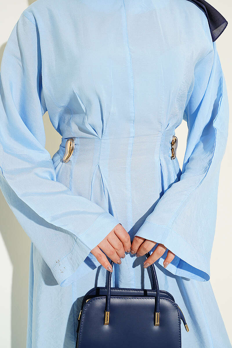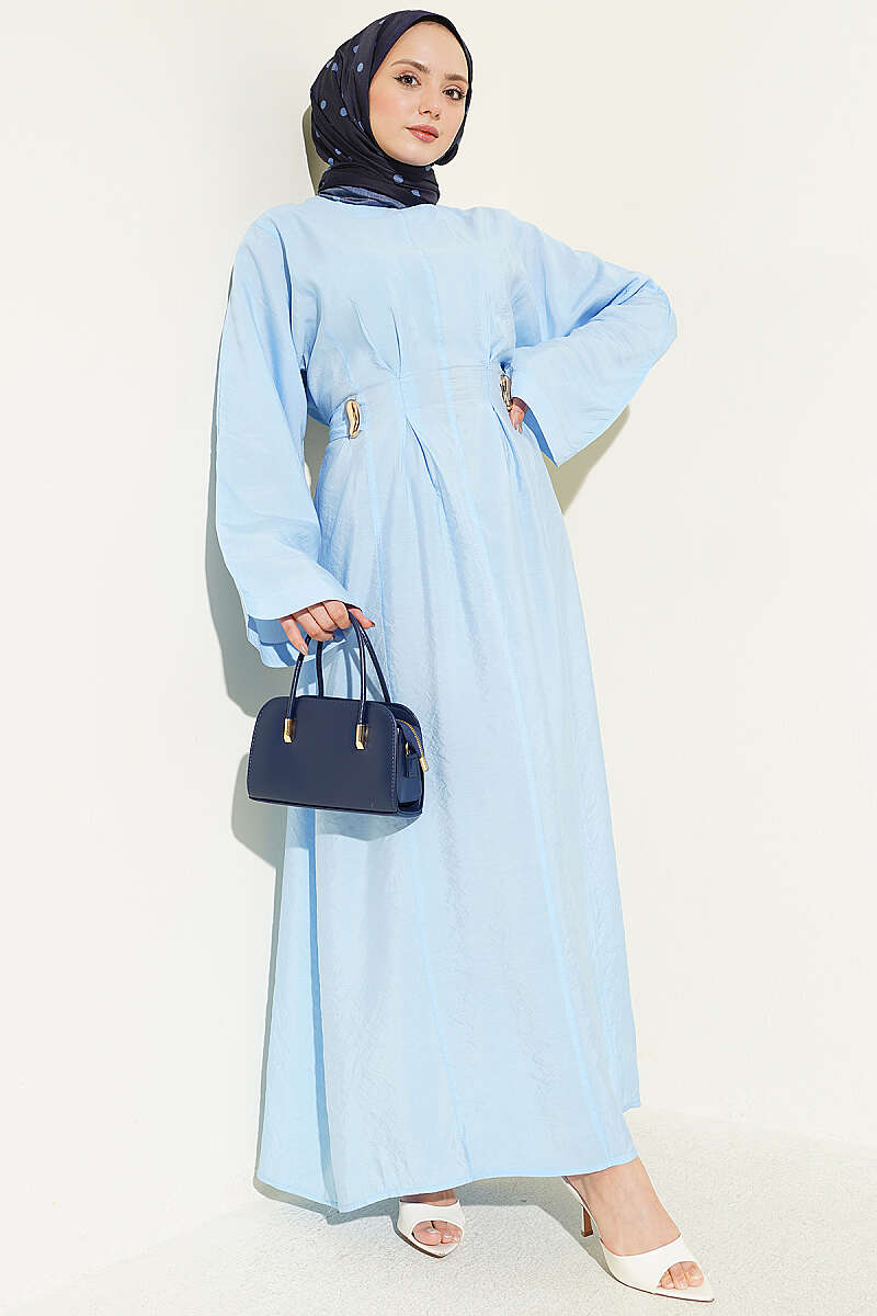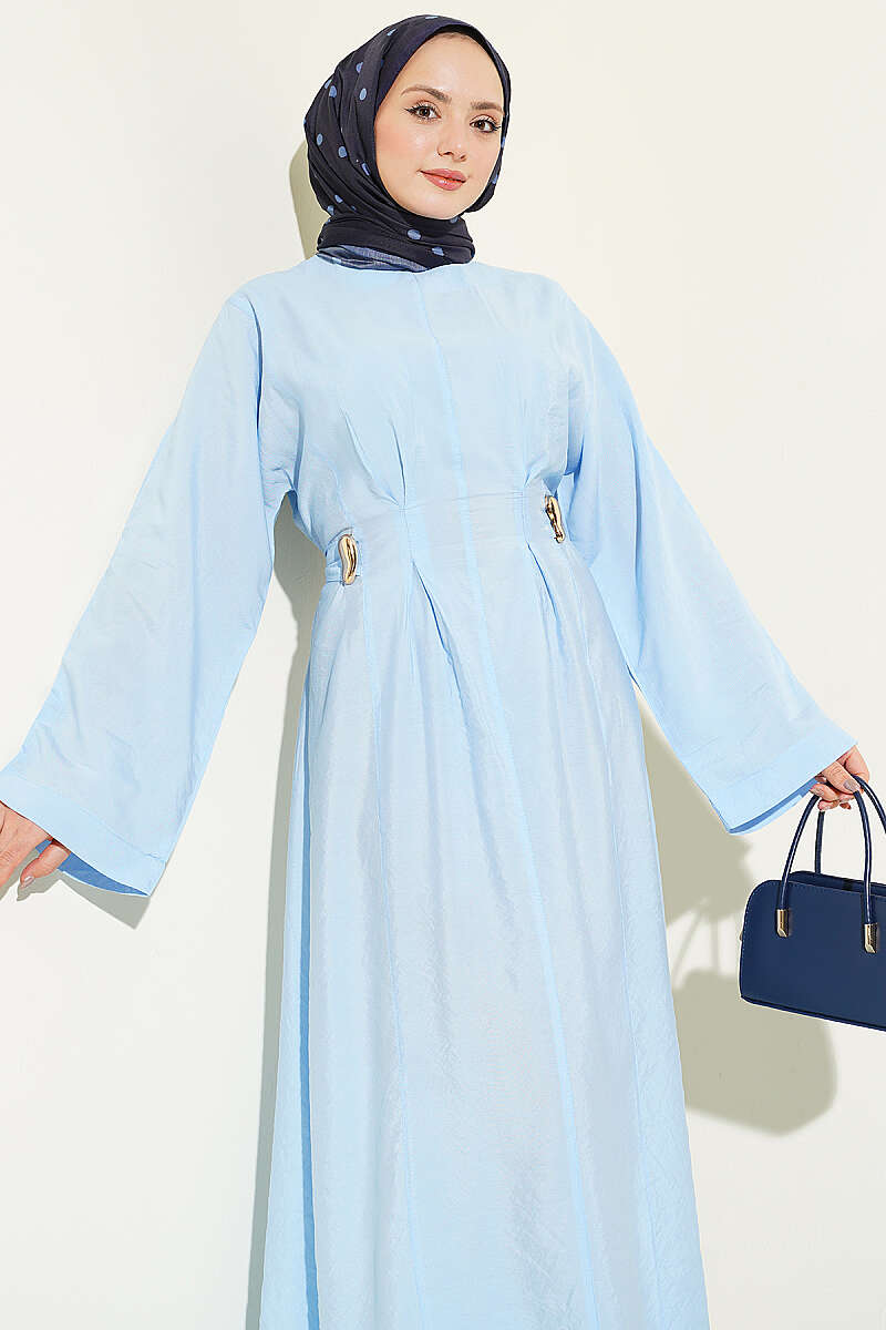 Gold Tokalı Pens Detaylı Elbise Bebe Mavi