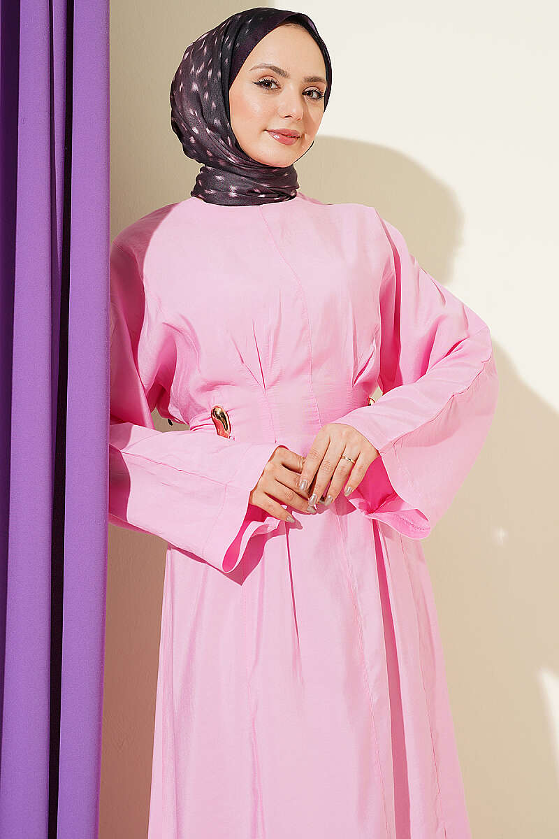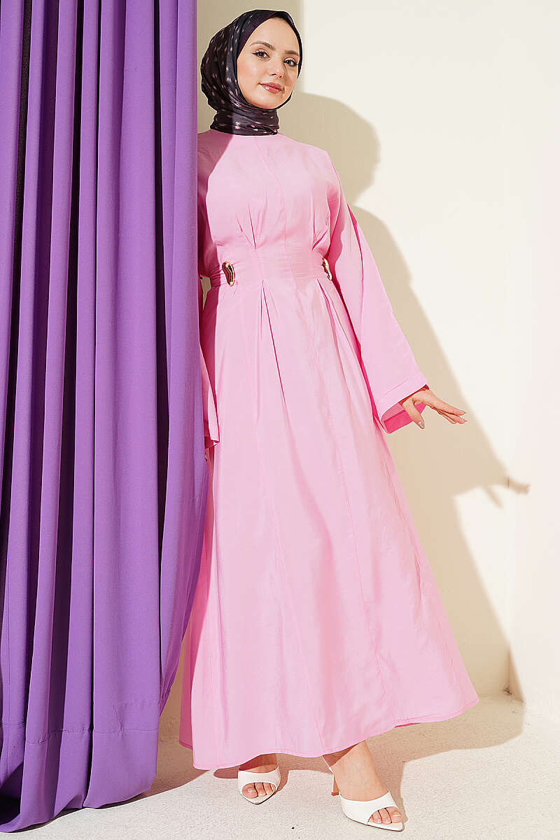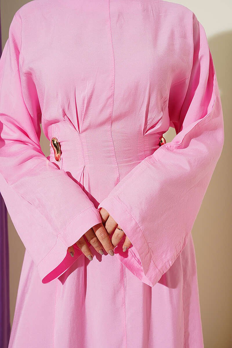 Gold Tokalı Pens Detaylı Elbise Pembe