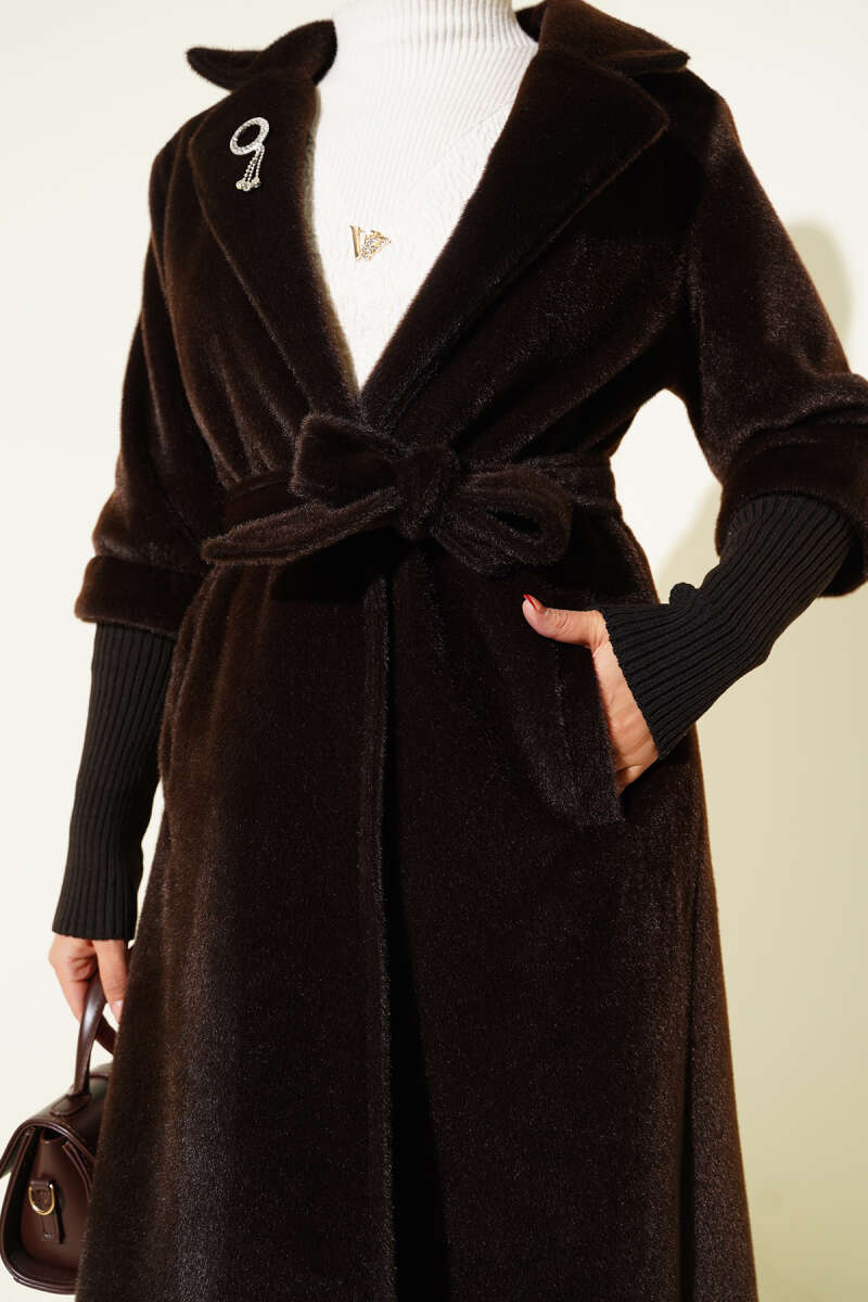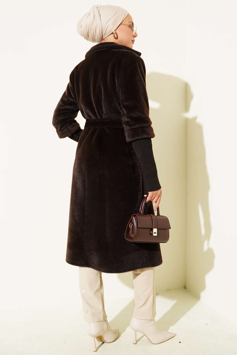 Bebe Yaka Detaylı Kaşe Kaban Kahve