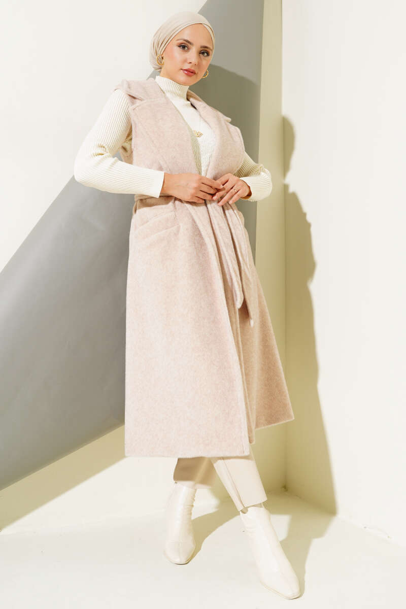 Fermuarlı Uzun Kapitone Yelek Kahve