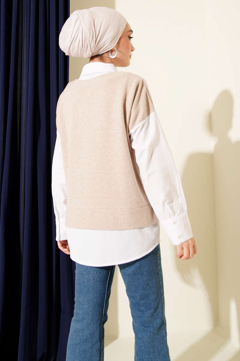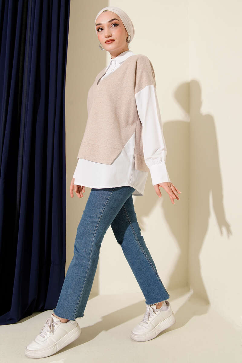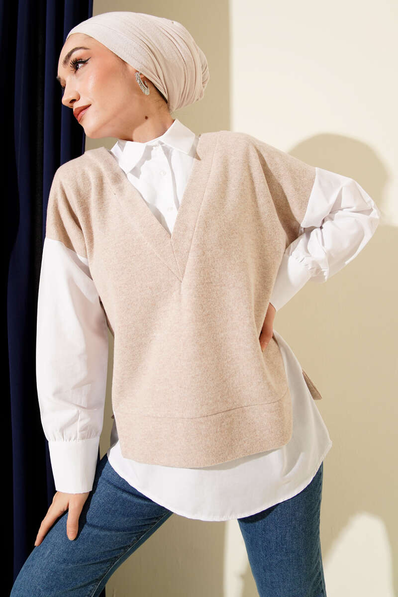 Baklava Kabartma Salaş Triko Tunik Vizon