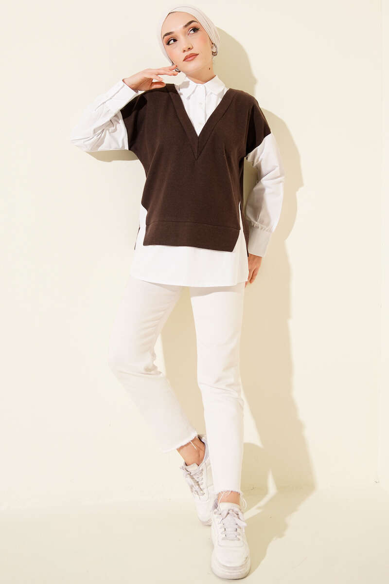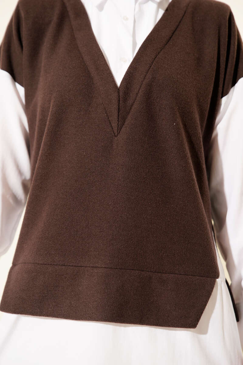 Baklava Kabartma Salaş Triko Tunik Kahve