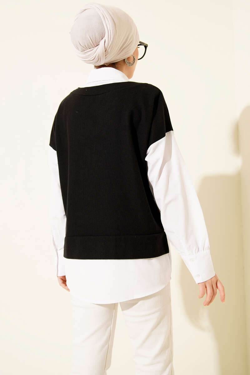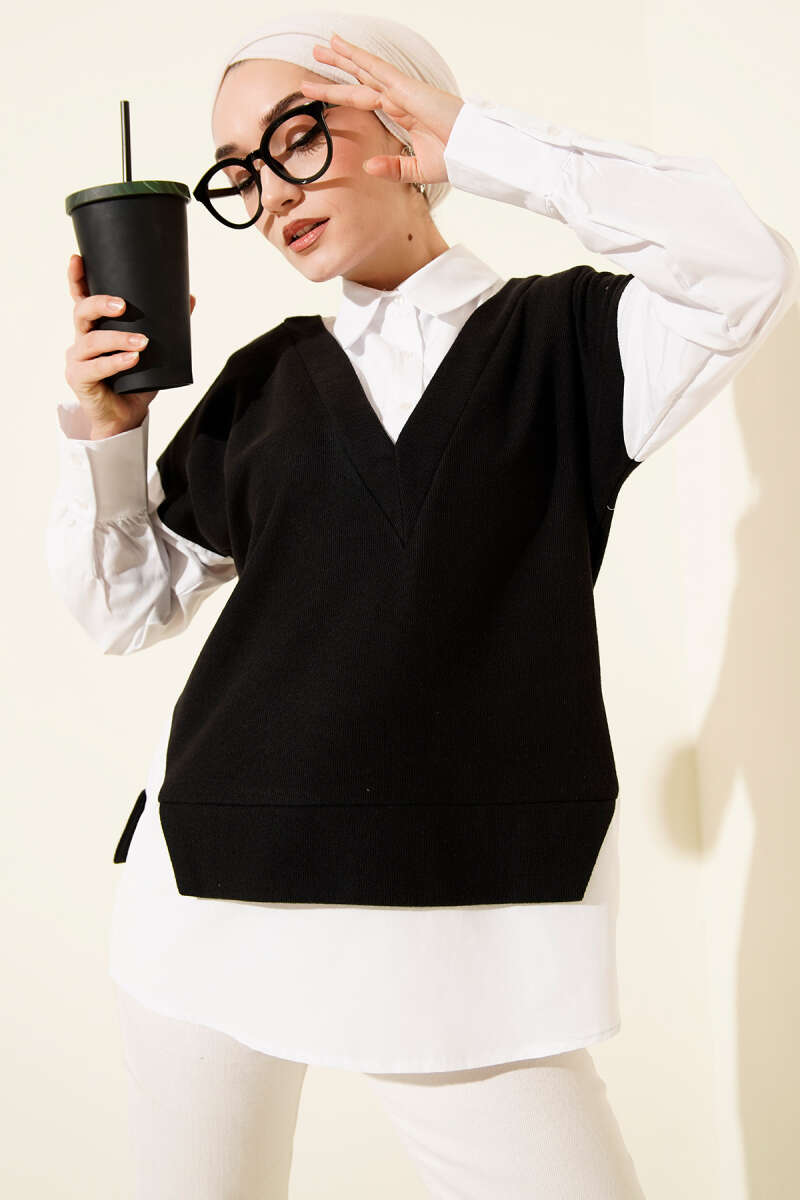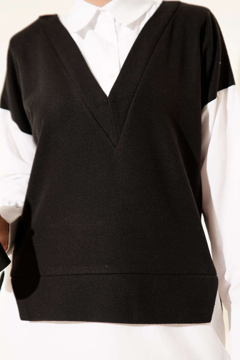 Gömlek Yaka Fularlı Triko Tunik Siyah