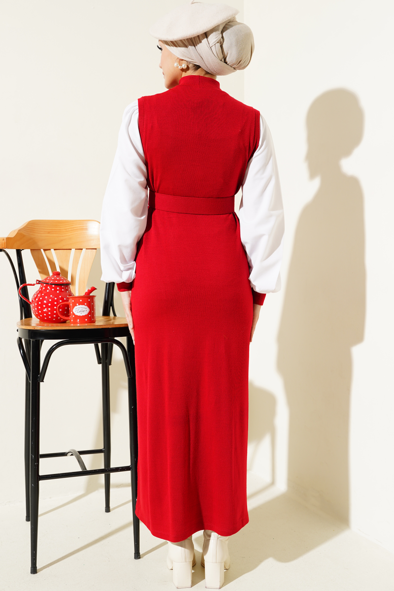 Yarım Yaka Fermuarlı Scuba Elbise Bordo