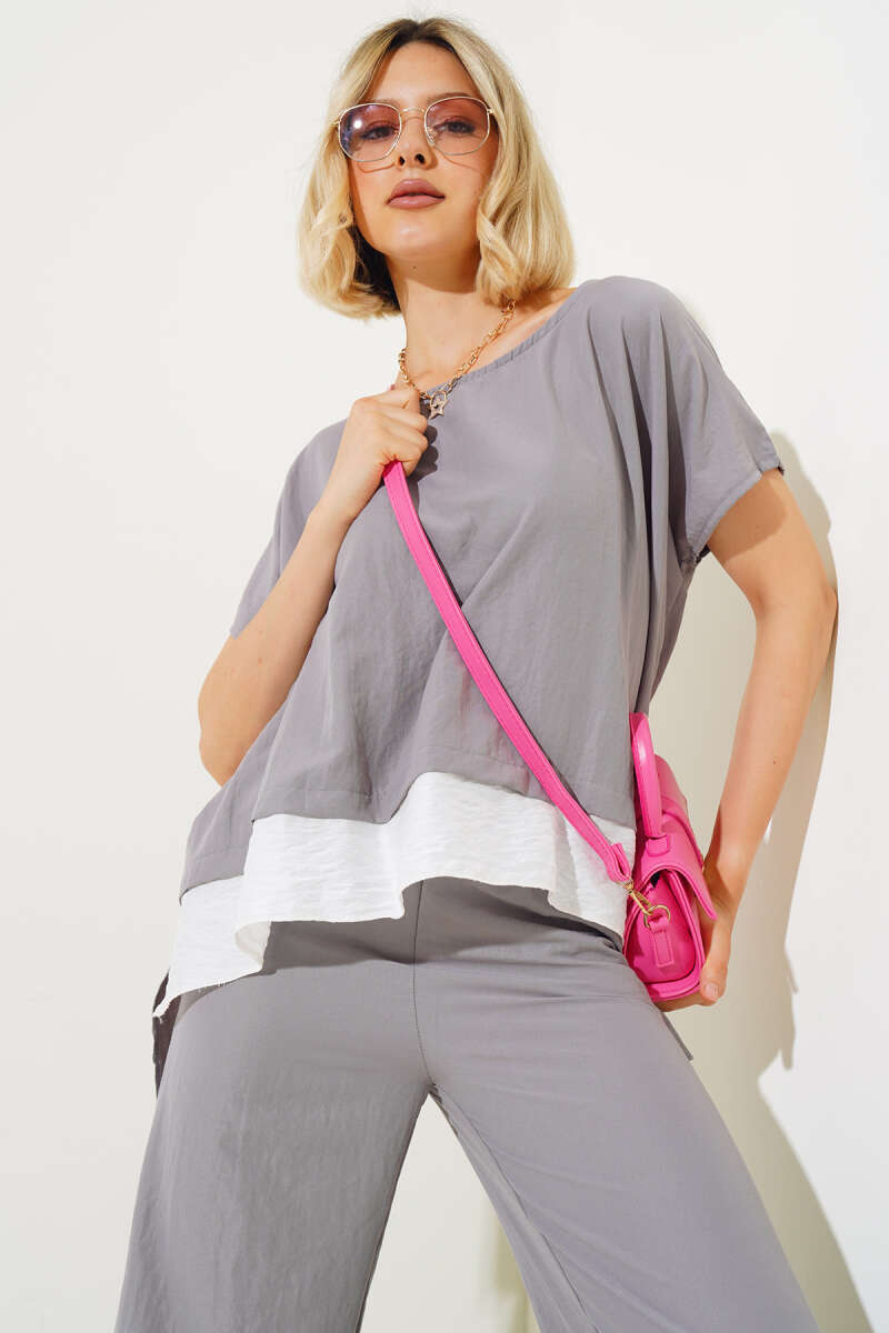 Yan Şeritli Fermuarlı İkili Takım Füme