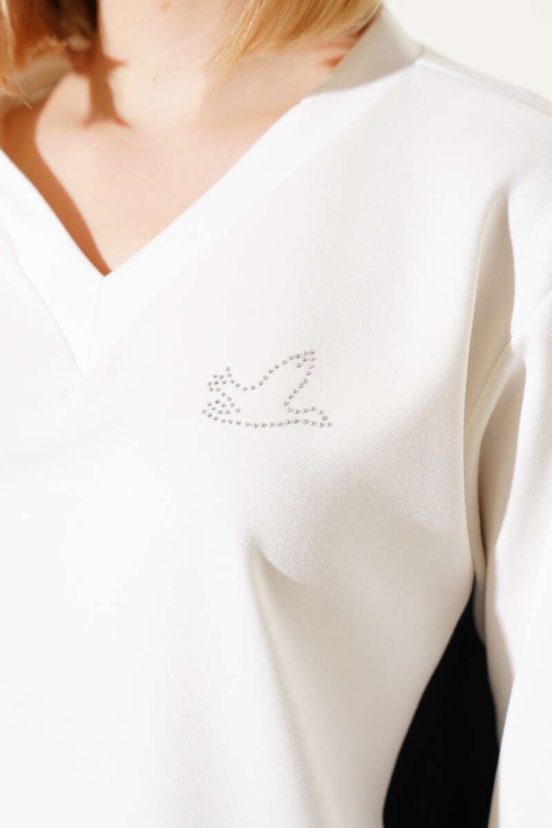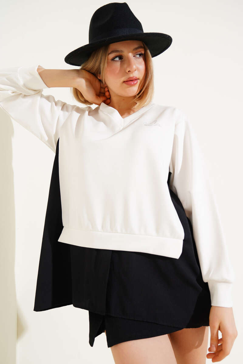 Gömlek Garnili Kuş Taşlı Salaş Sweatshirt Ekru