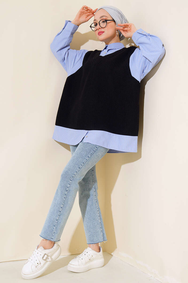 Yeni sezon triko modelimiz sizlerle beraber. Gömlek garnili trikomuz şık bir tasarıma sahiptir. Gömleği çizgili oluşu hareketlilik kazanmıştır. Kol bilekleri düğmeli olan trikomuzun renk seçenekleri mevcuttur.
