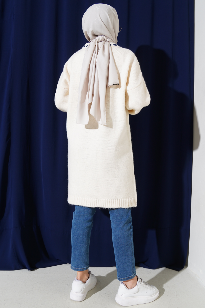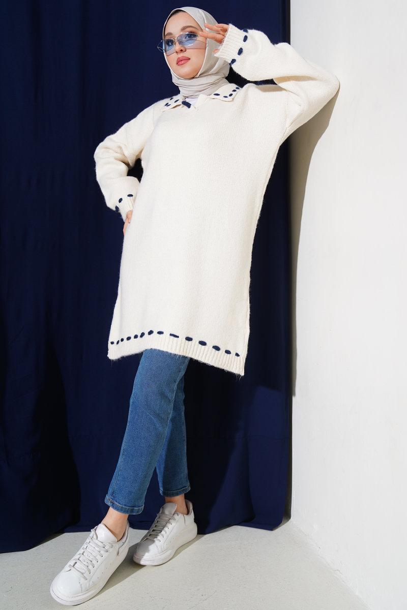Dik Yaka Basic Yumoş Triko Tunik Latte