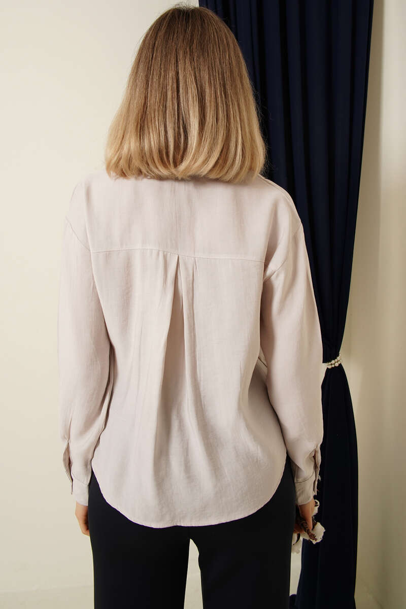 Cep Kapaklı Tek Düğmeli Blazer Ceket Bej
