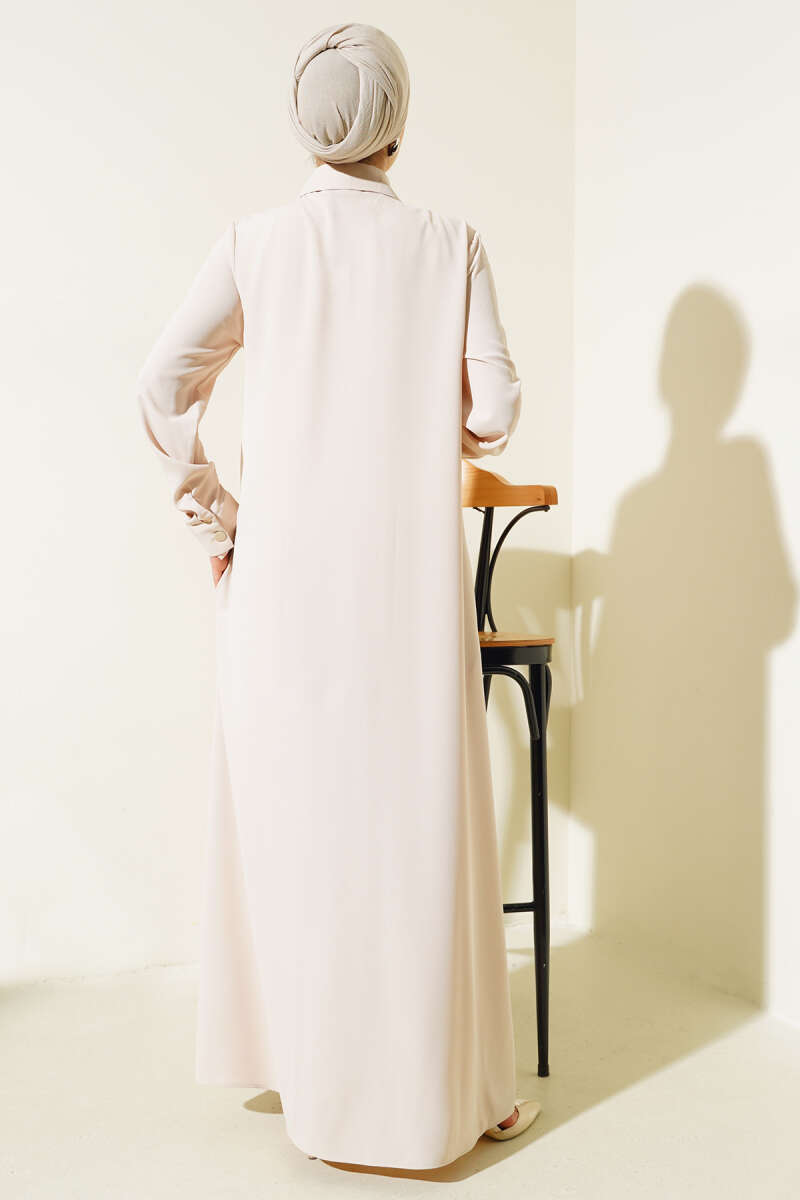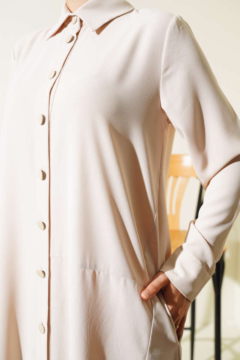 Gömlek Yaka Boy Düğmeli Salaş Elbise Bej