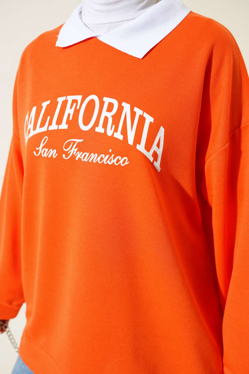 Gömlek Yaka California Baskılı Sweatshirt Oranj
