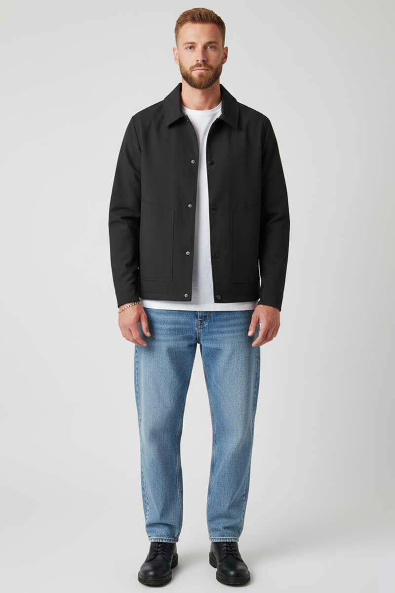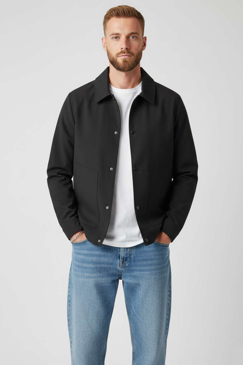 Fermuarlı Çıtçıtlı Erkek Mont Siyah