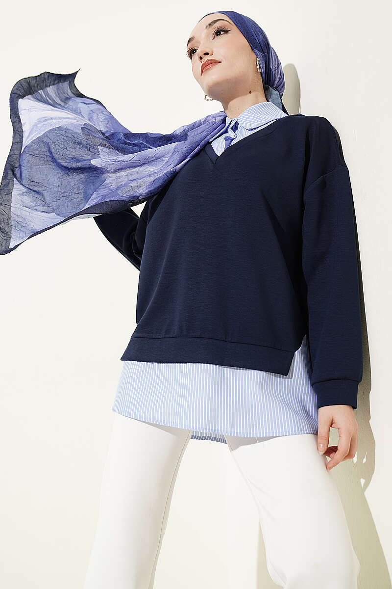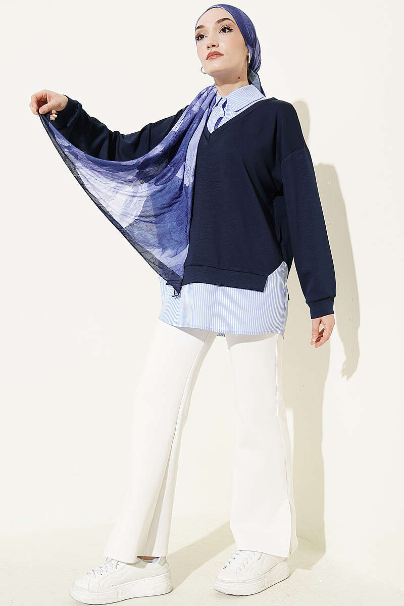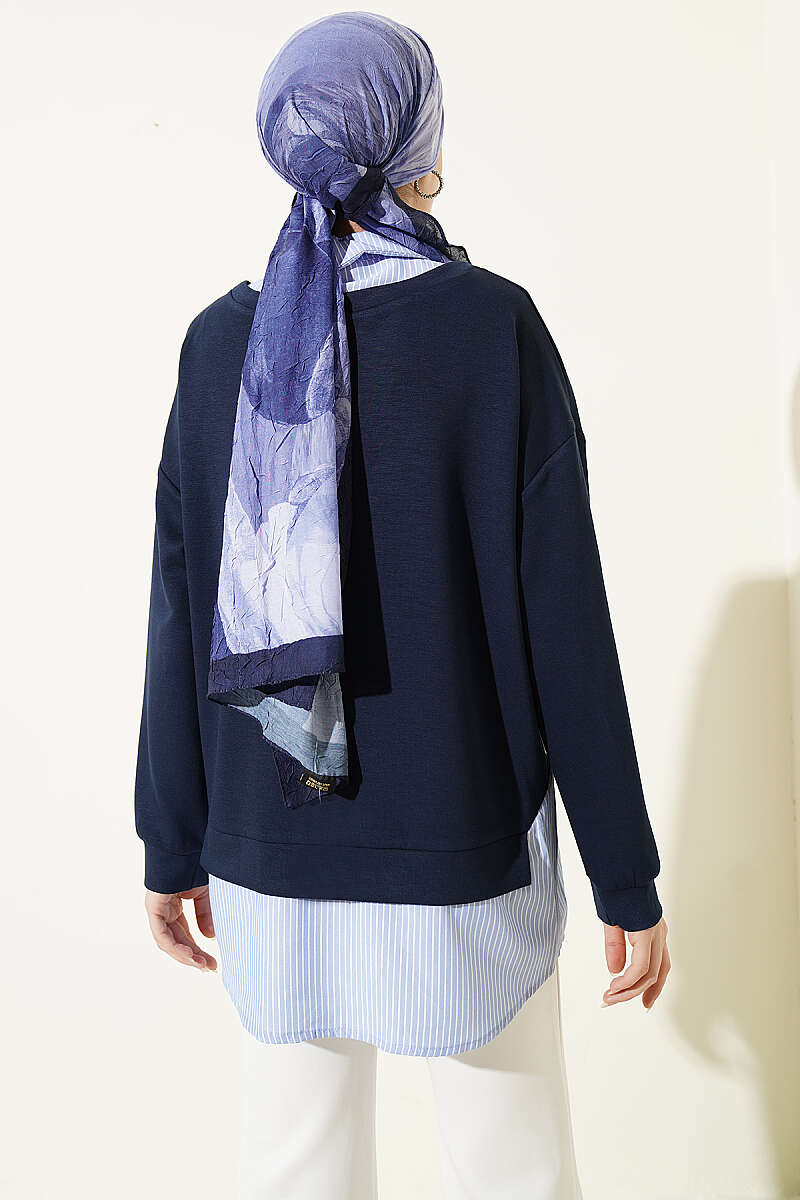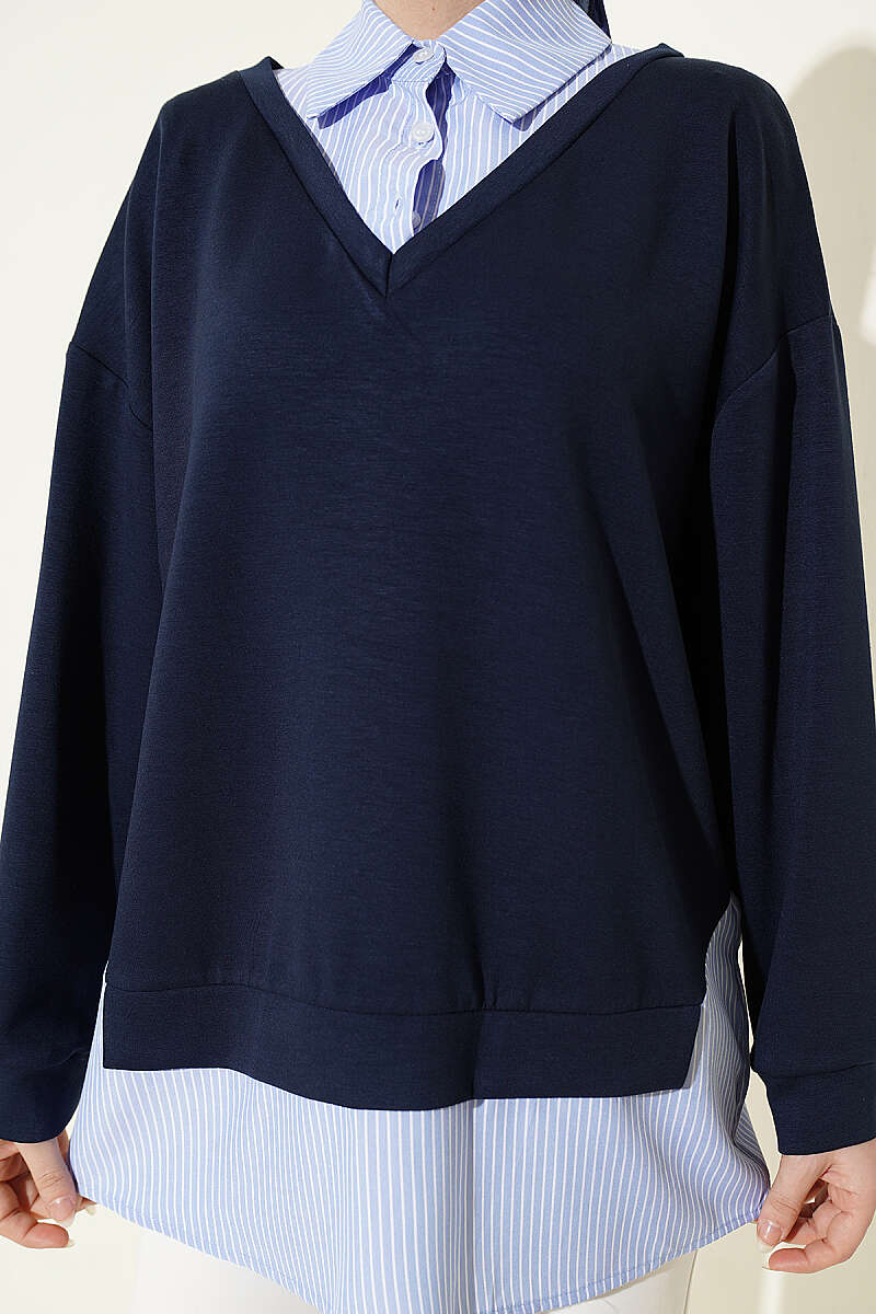 Çizgi Gömlek Garnili Loyşa Tunik Lacivert