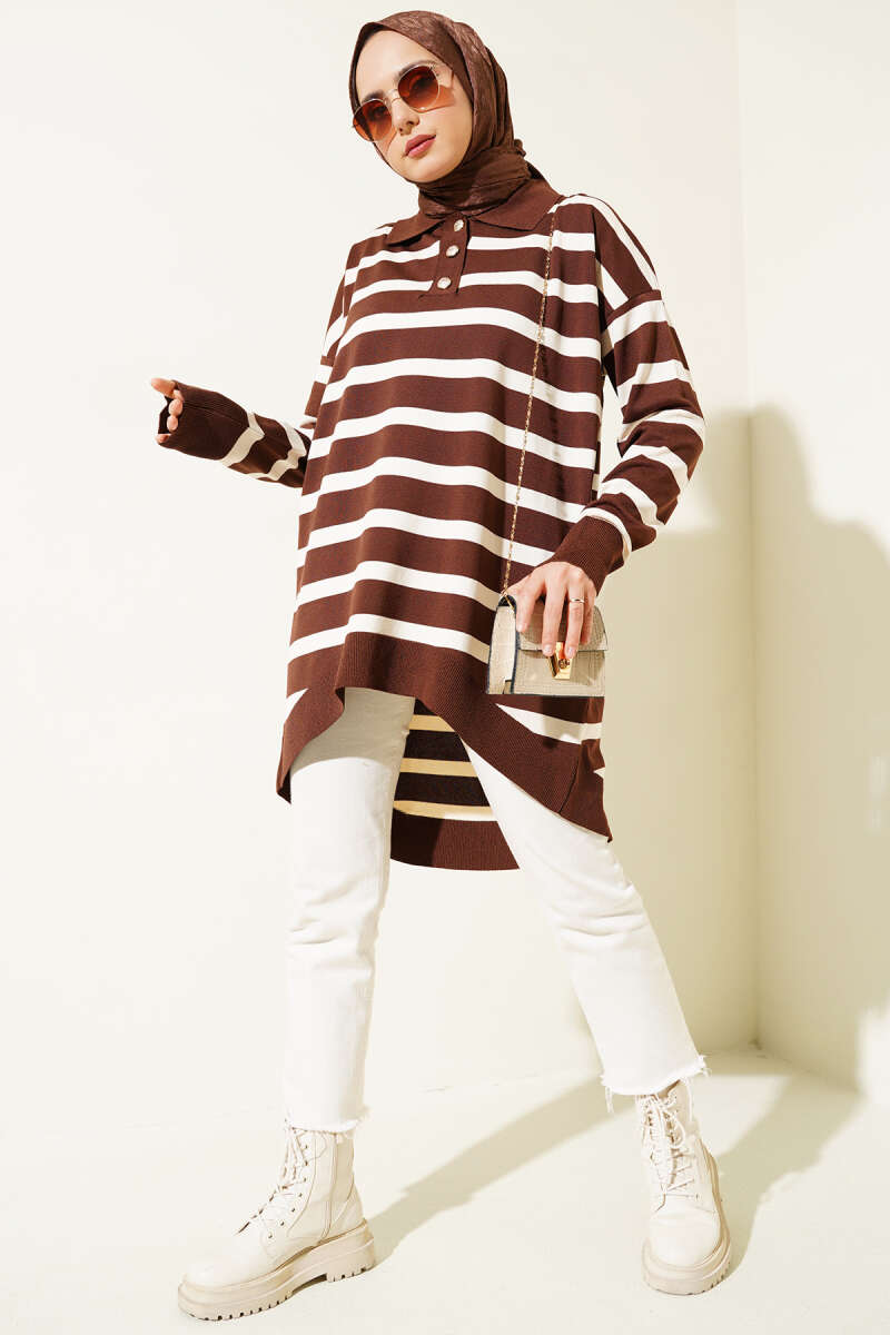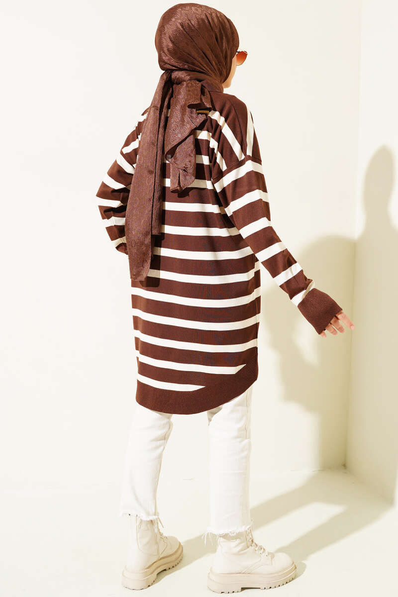 Basic Yatay Çizgi Detaylı Triko Tunik Bordo