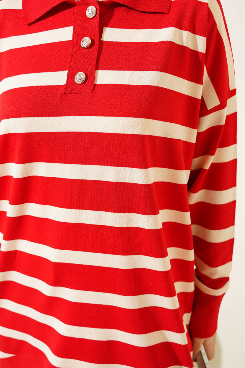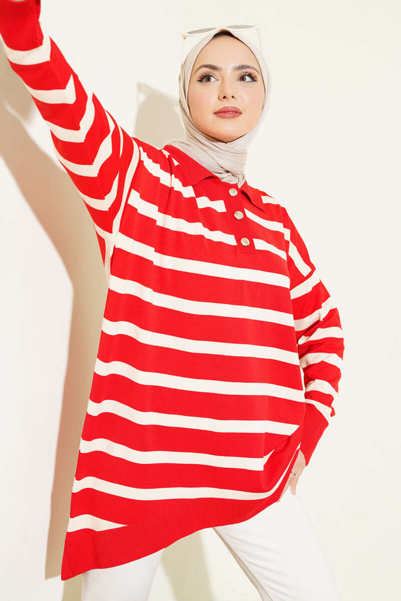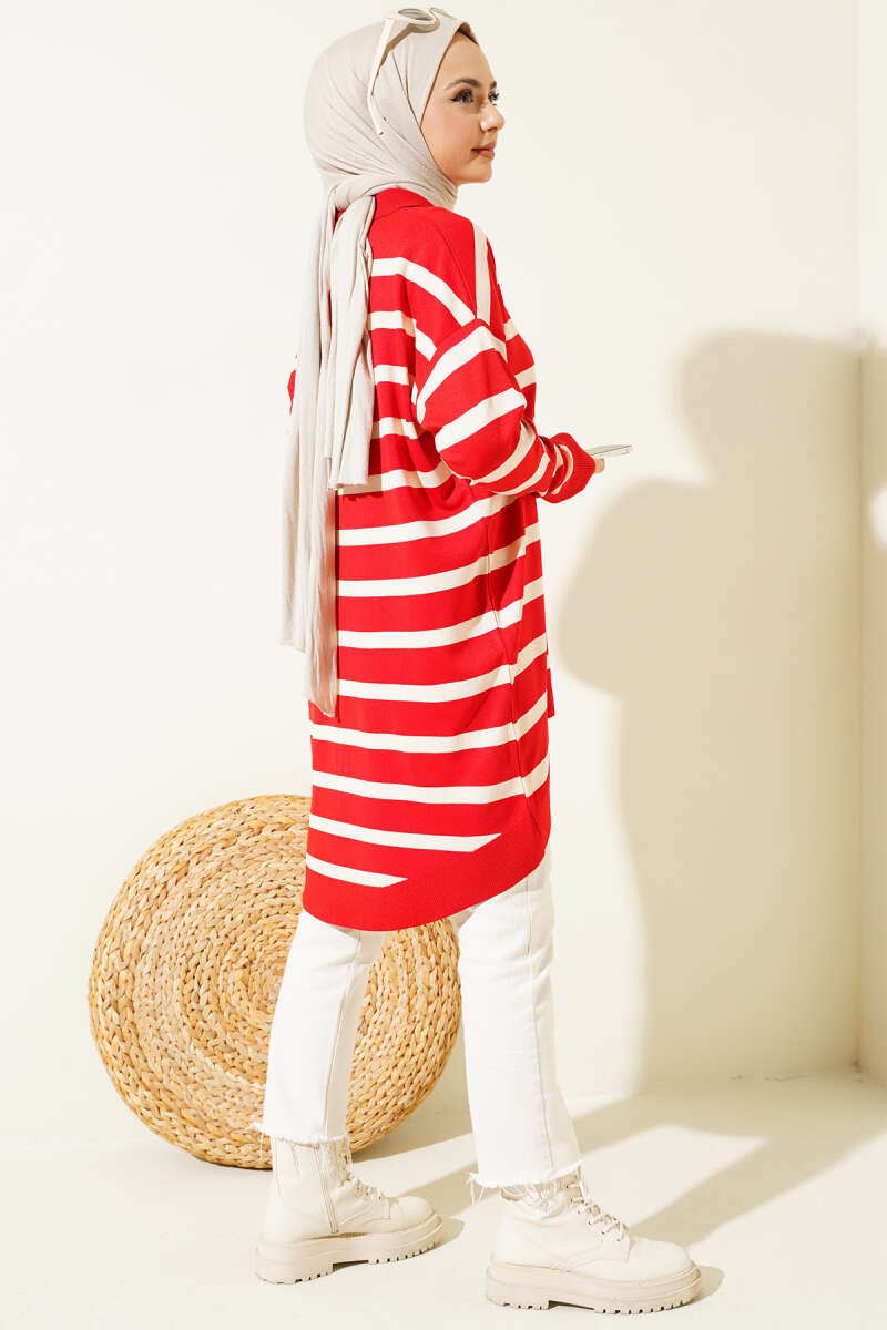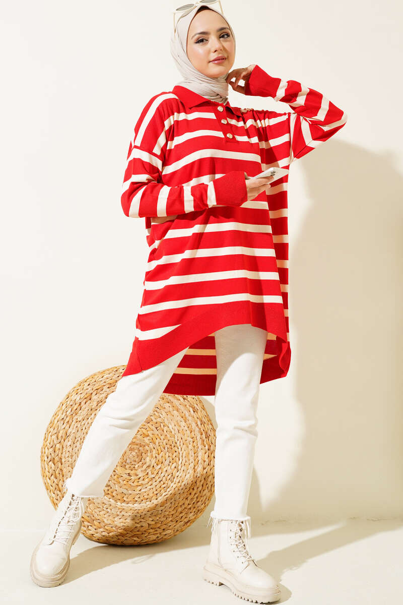 Basic Yatay Çizgi Detaylı Triko Tunik Bordo