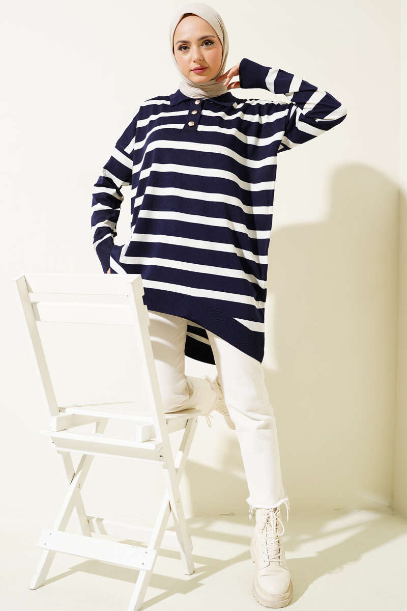 Basic Oversize Triko Tunik Lacivert