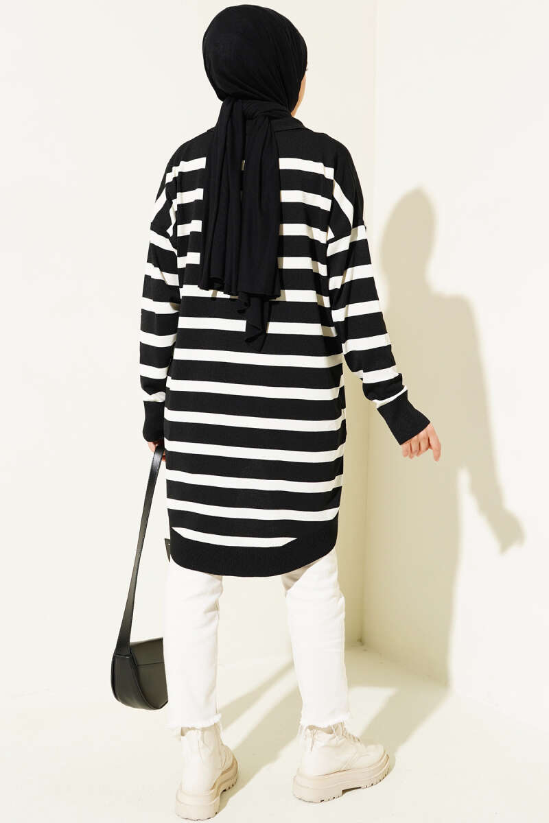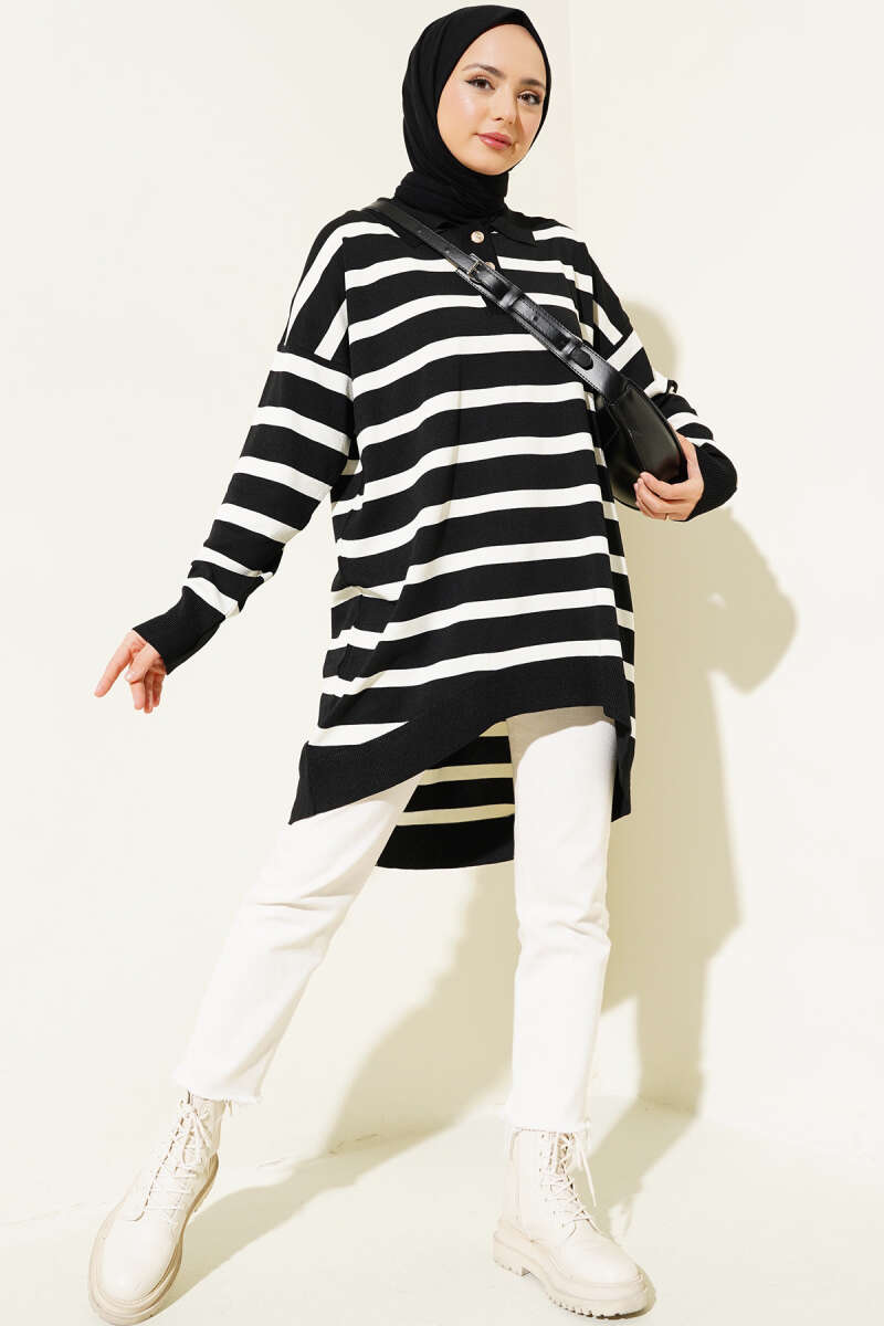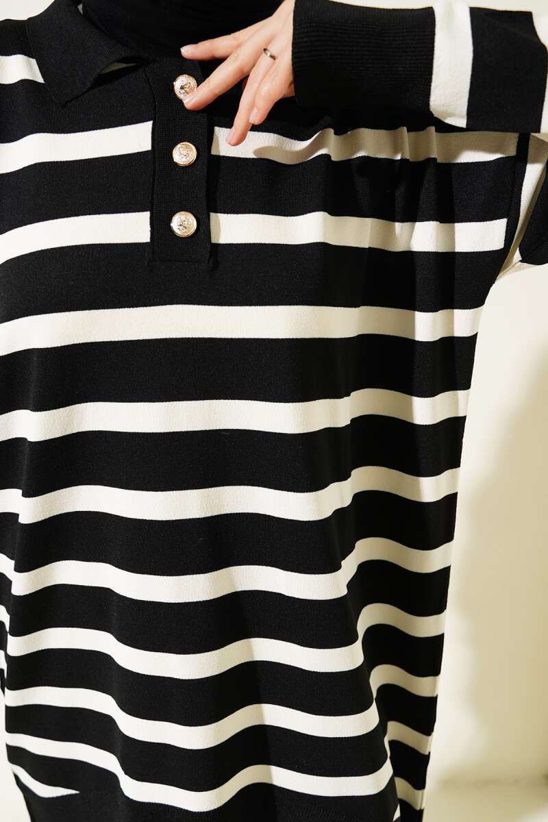 Gömlek Yaka Çizgili Salaş Triko Tunik Bisküvi