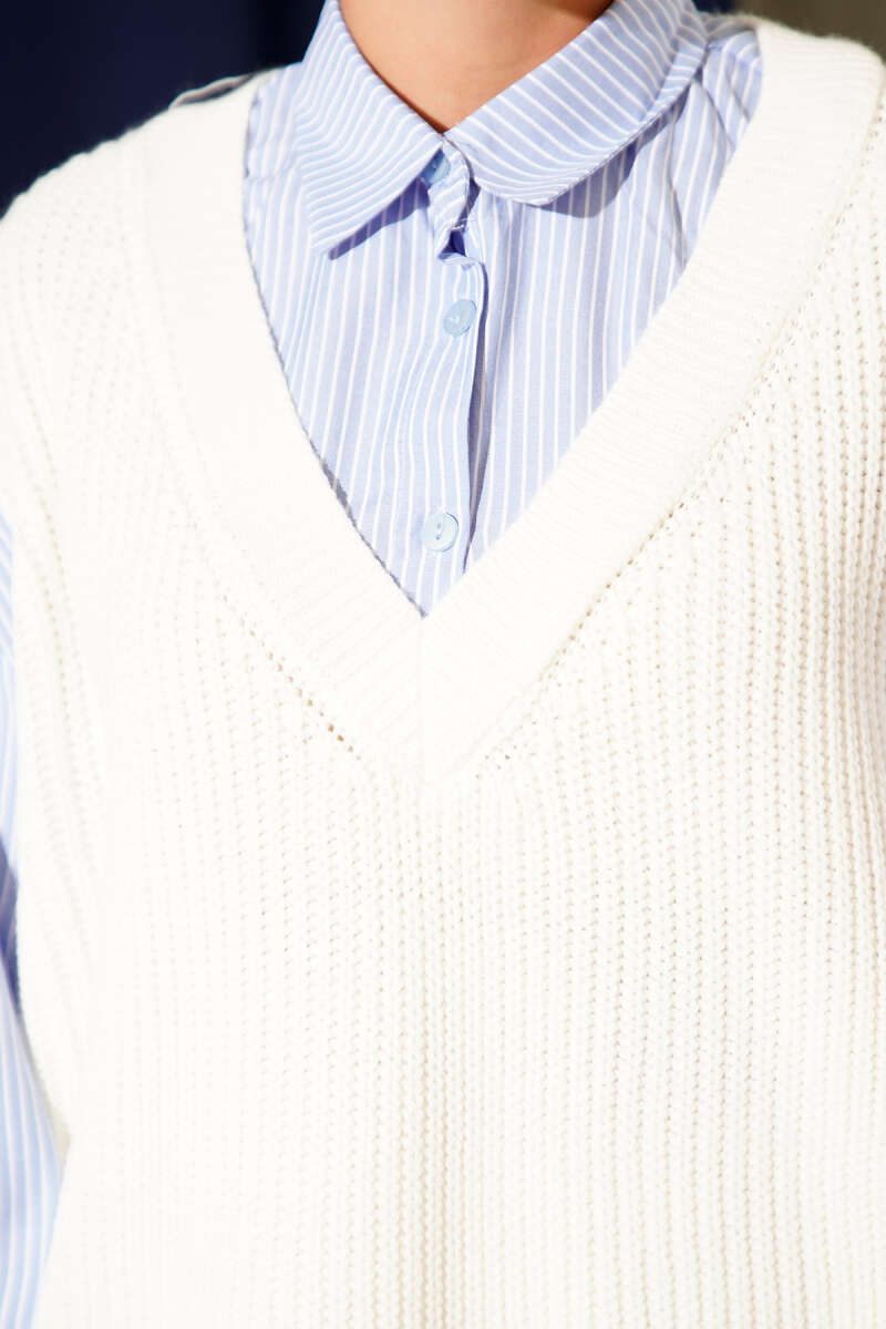 Kolsuz Kemerli Pens Detaylı Elbise Beyaz