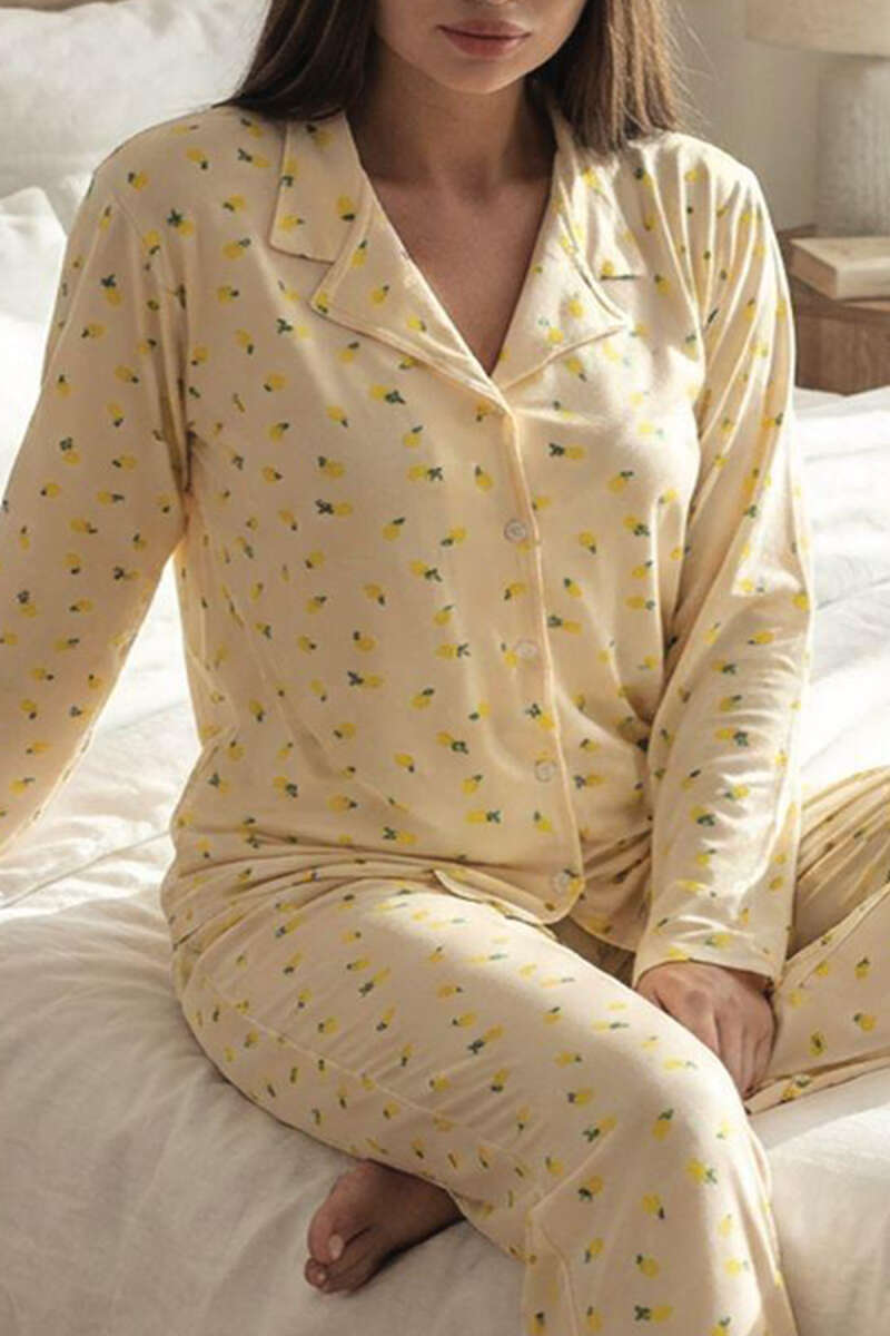 Gömlek Yaka Damla Desen Pijama Takımı Lime