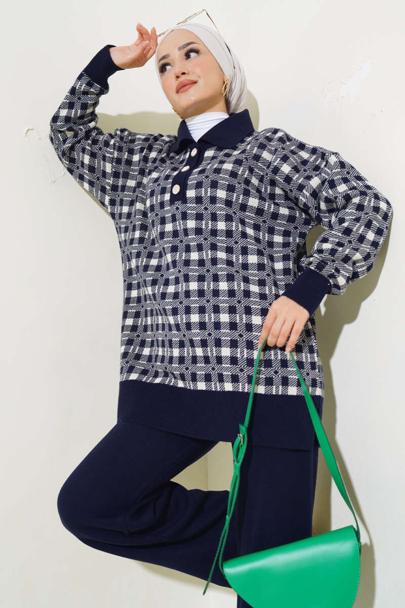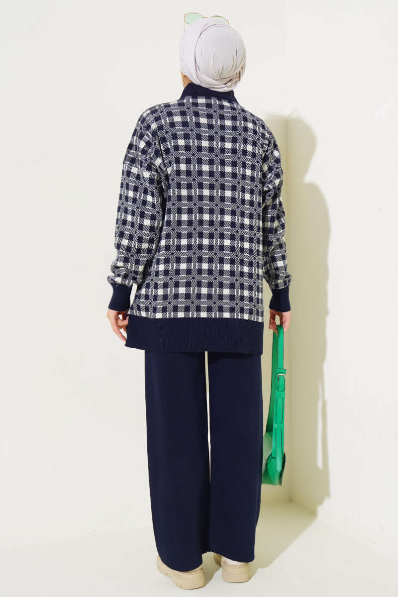 Balıkçı Yaka Fitilli Triko İkili Takım Lacivert
