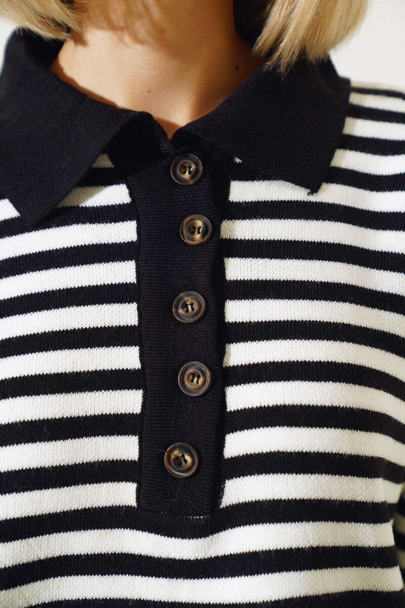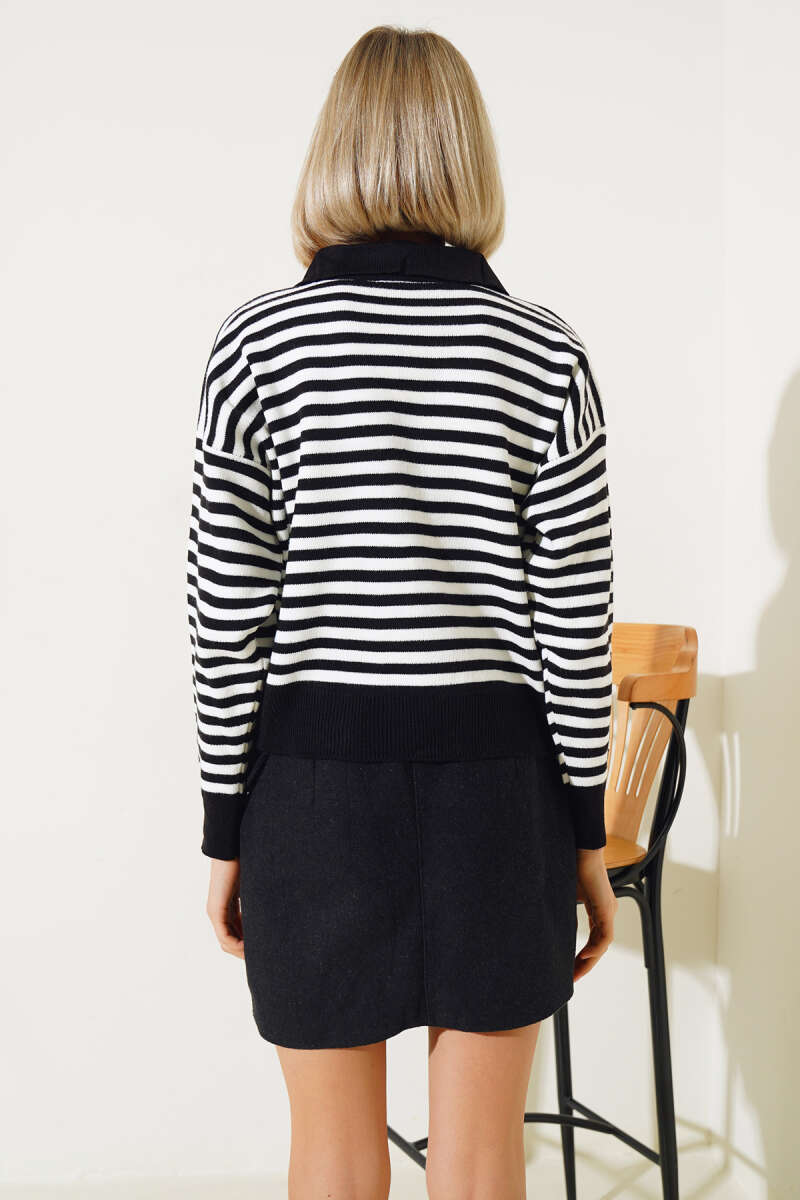 Bisiklet Yaka Sakal Detaylı Kazak Siyah
