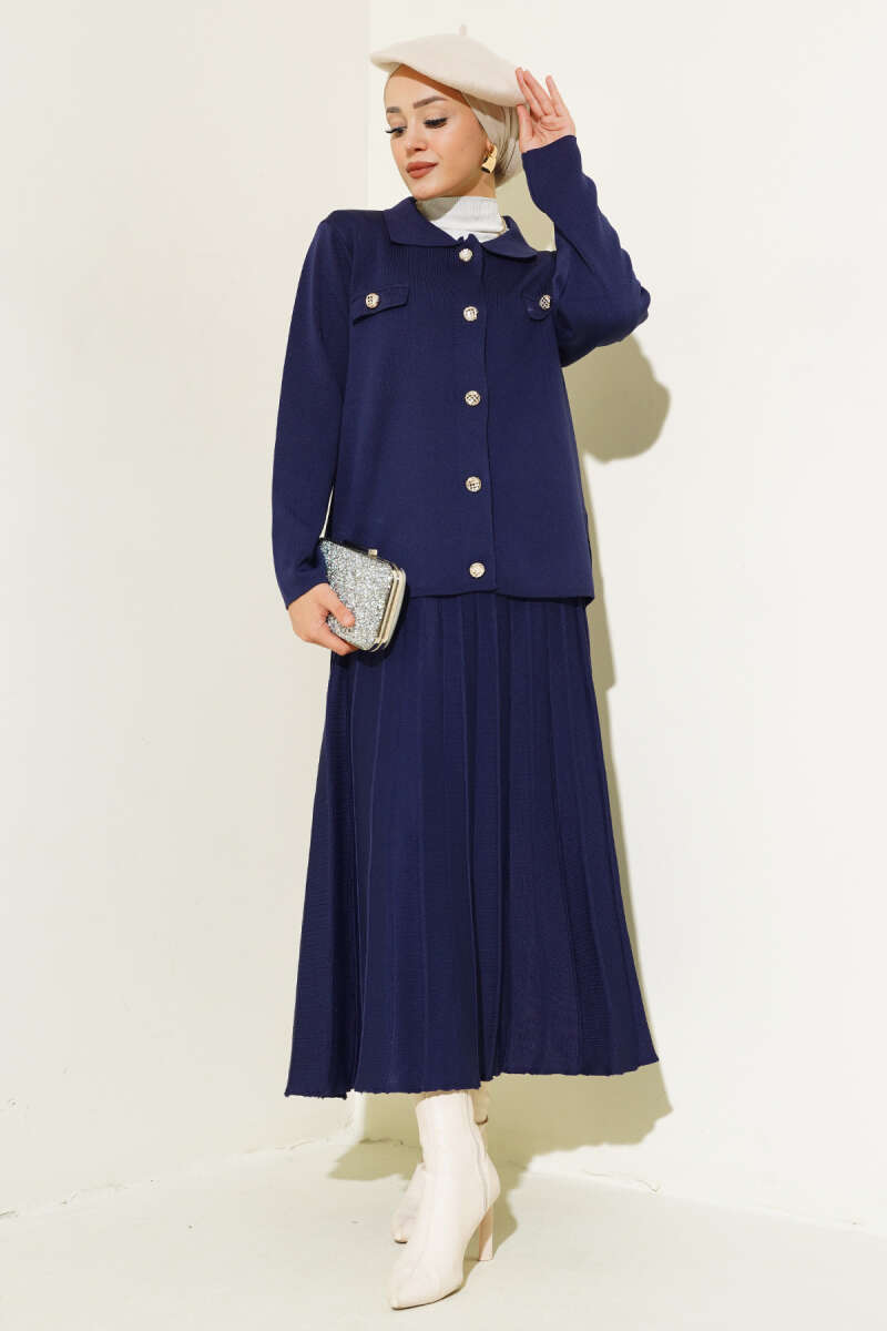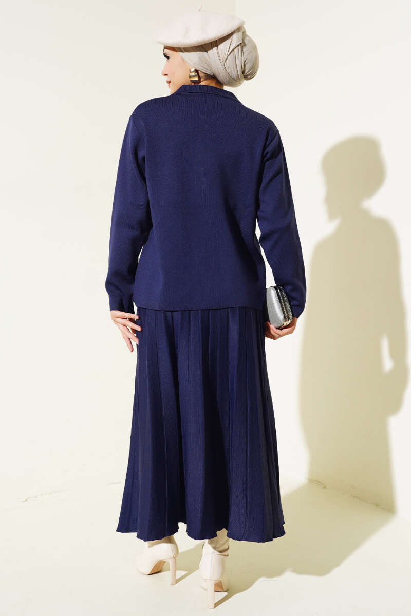 Gömlek Yaka Düğmeli Etekli Triko Takım Lacivert