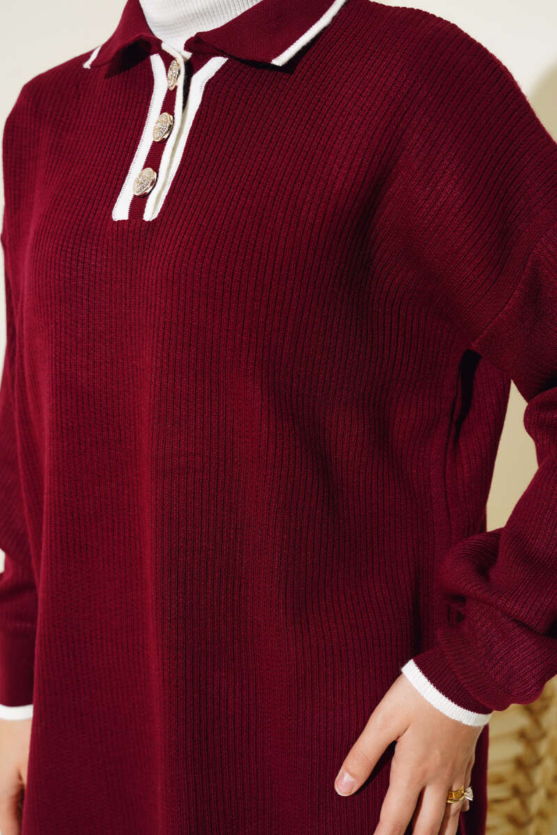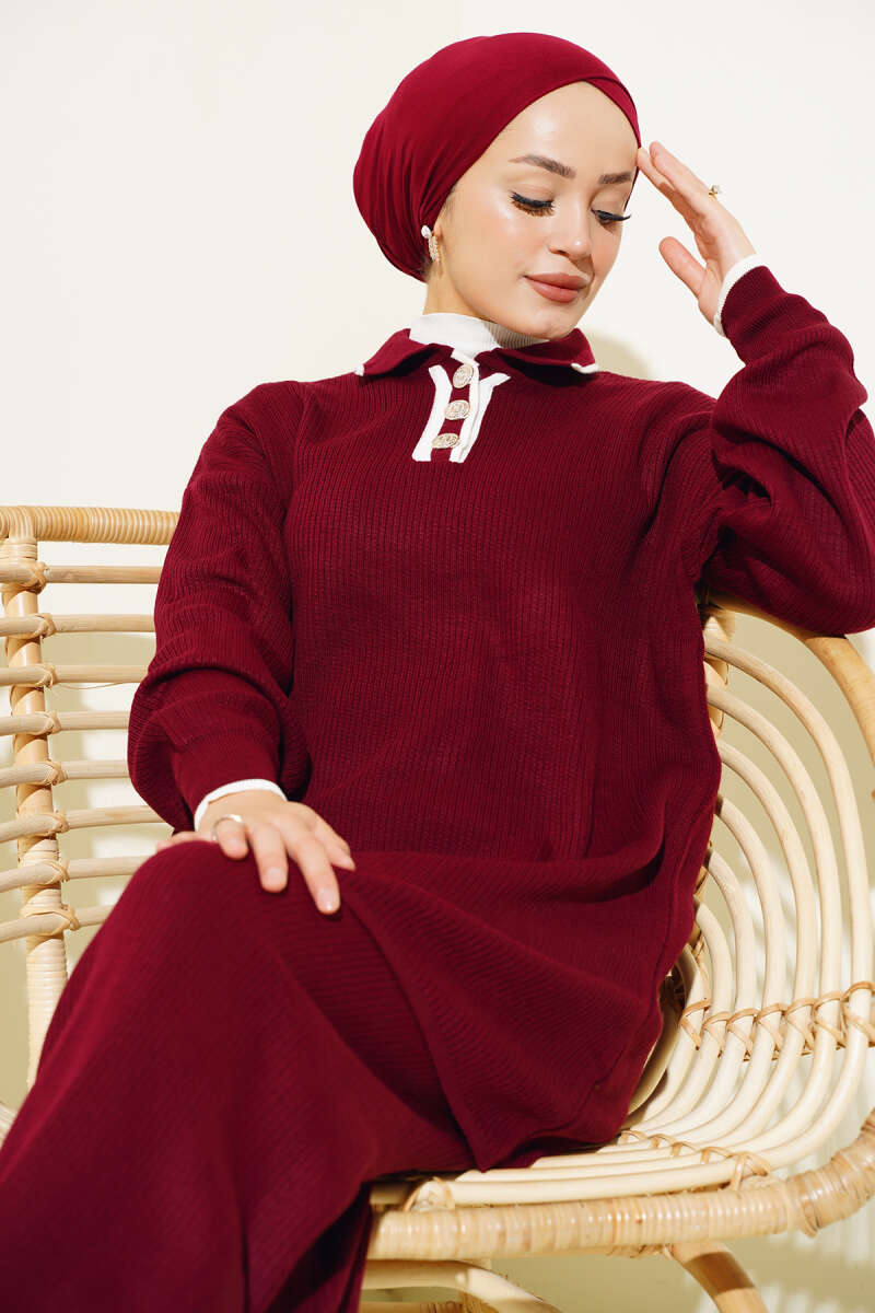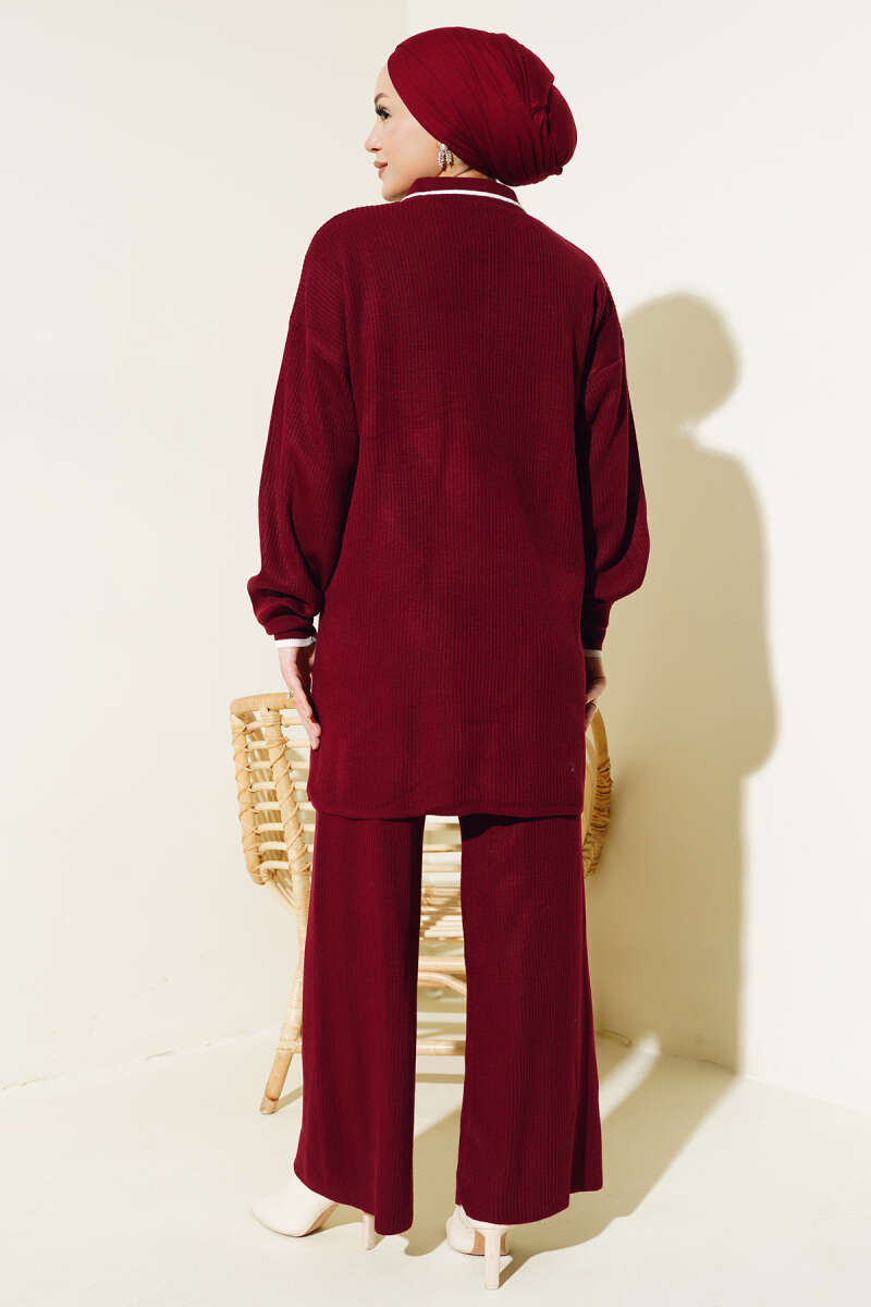 Balıkçı Yaka Fitilli Triko İkili Takım Bordo