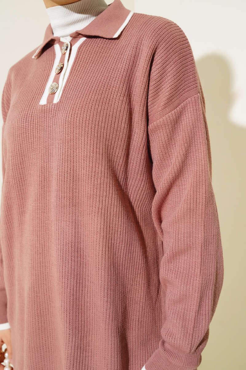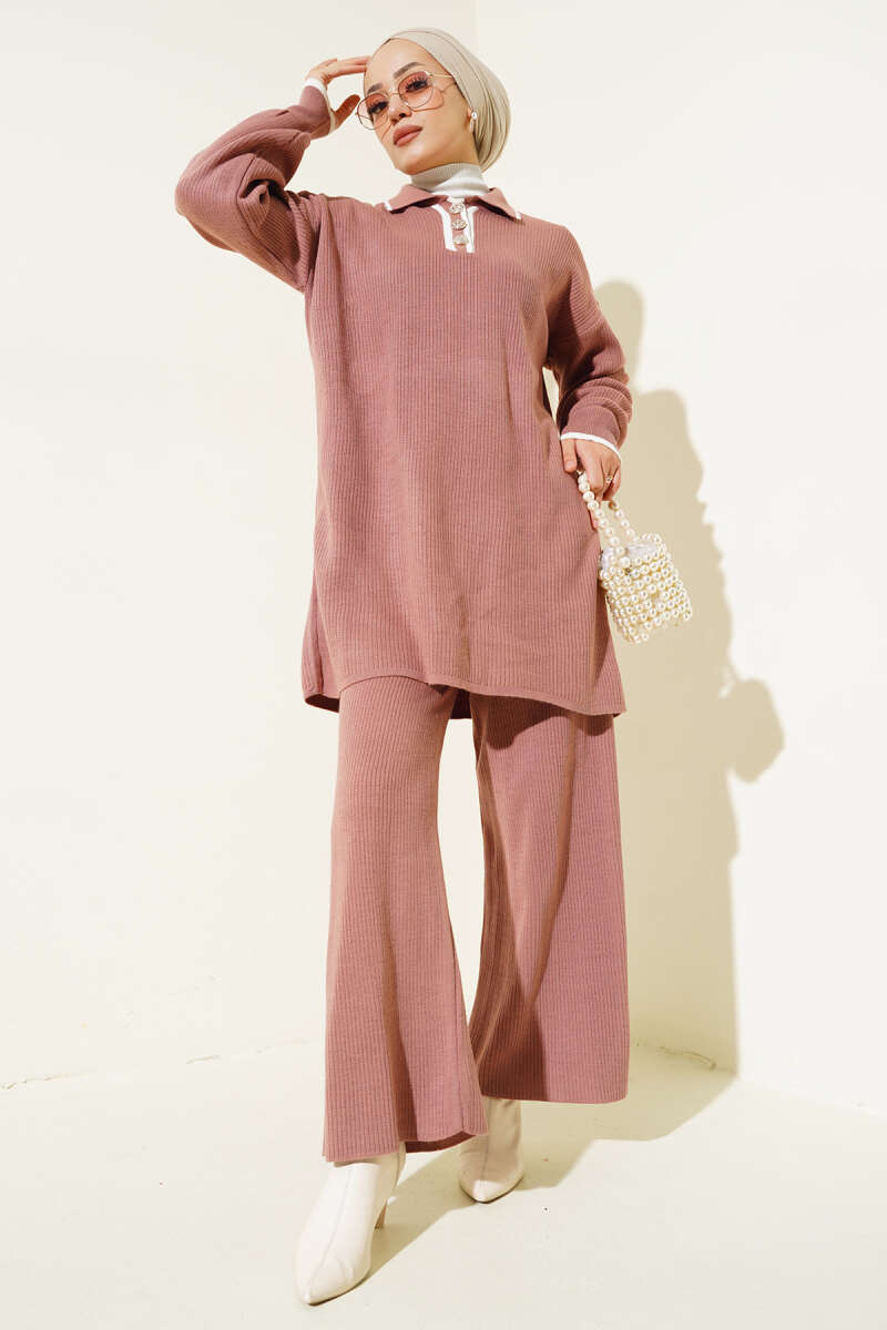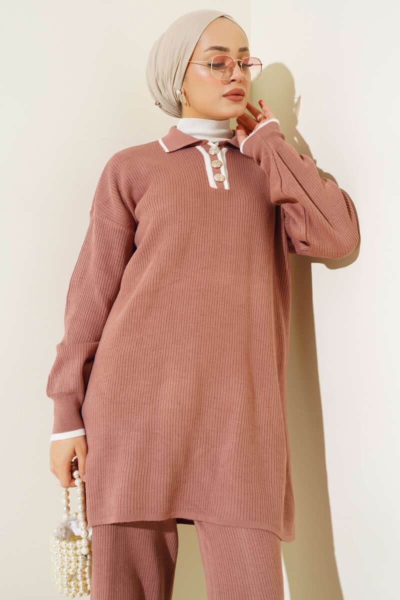 Balon Kol Balıkçı Yaka Triko İkili Takım Taş