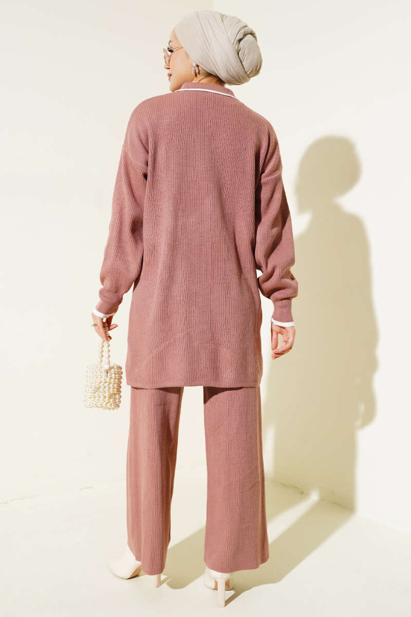 Dikiş Detaylı Basic Triko İkili Takım Vizon