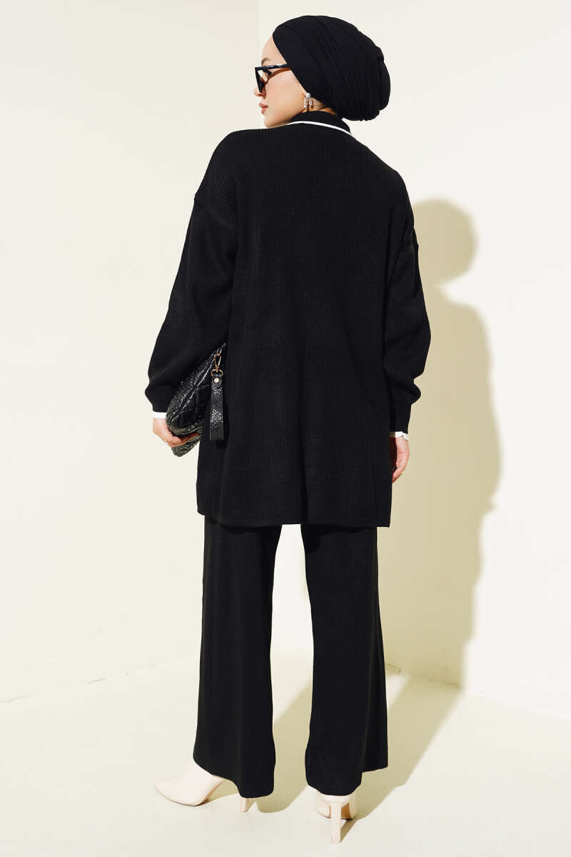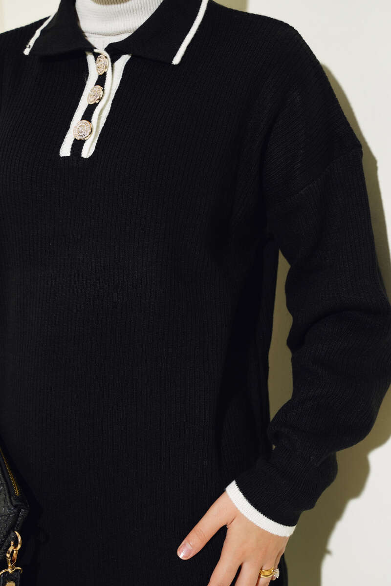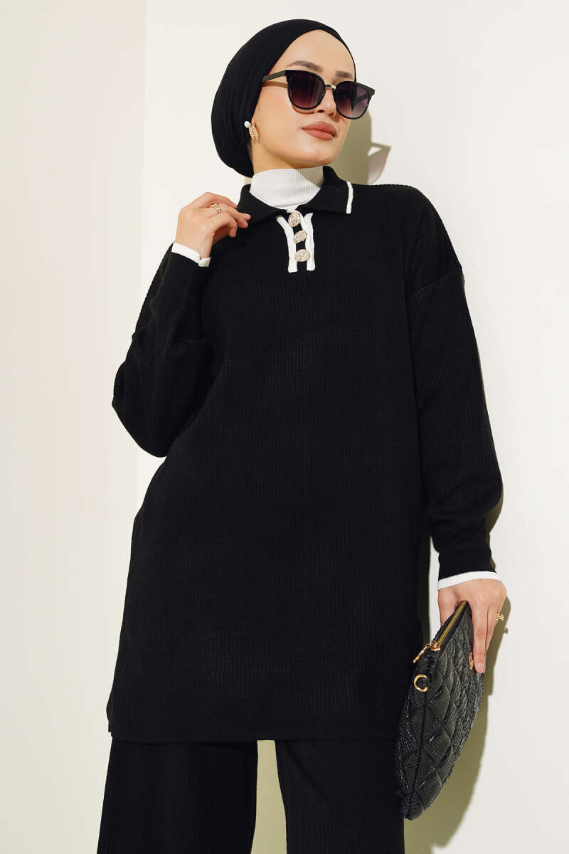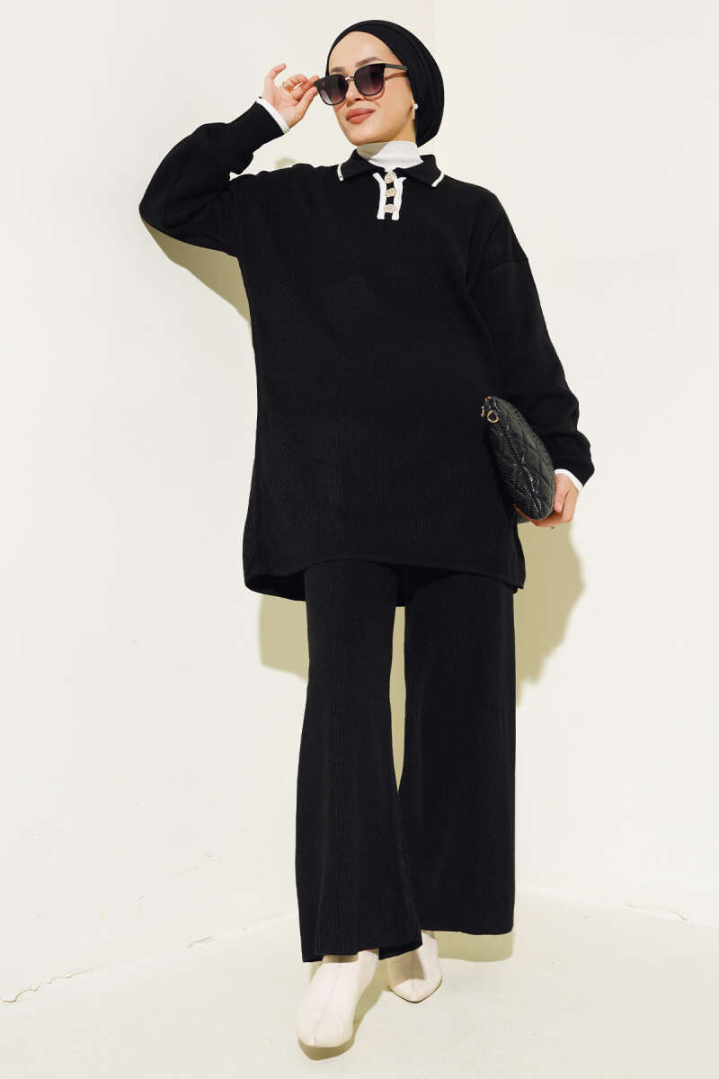Çoban Dikişli Triko Tunik İkili Takım Siyah