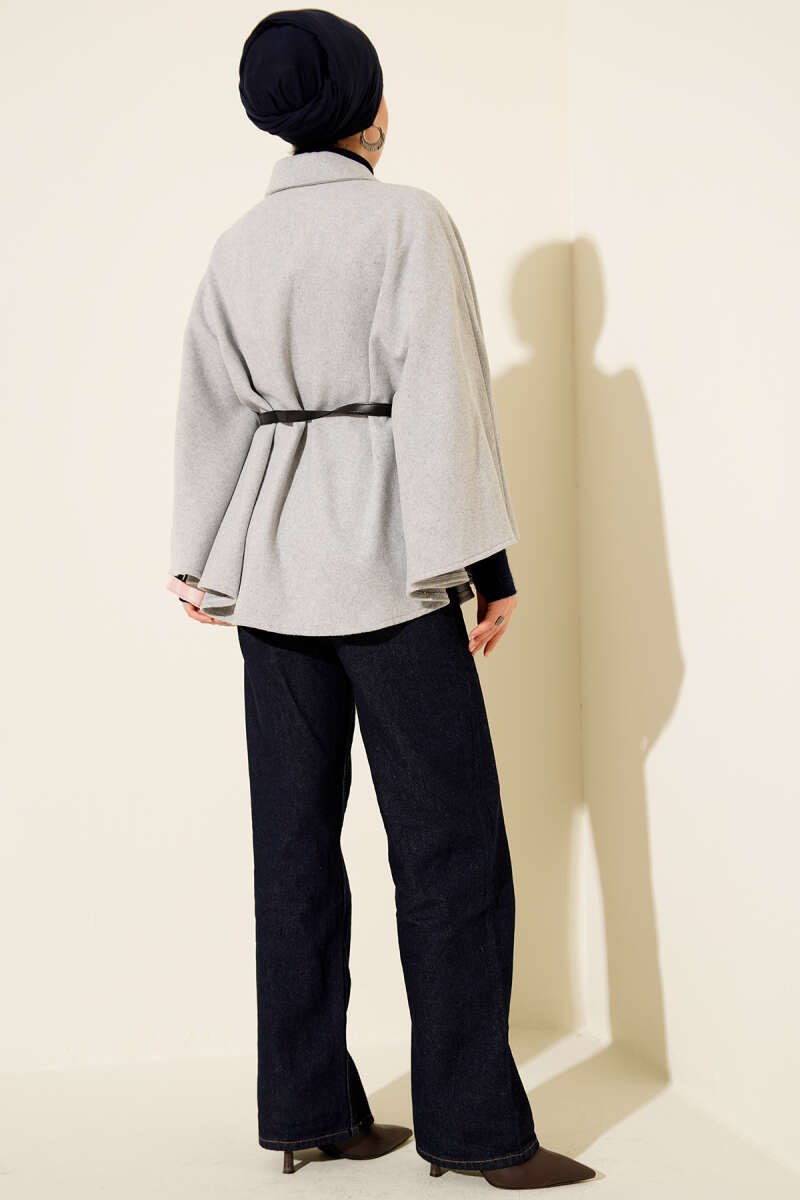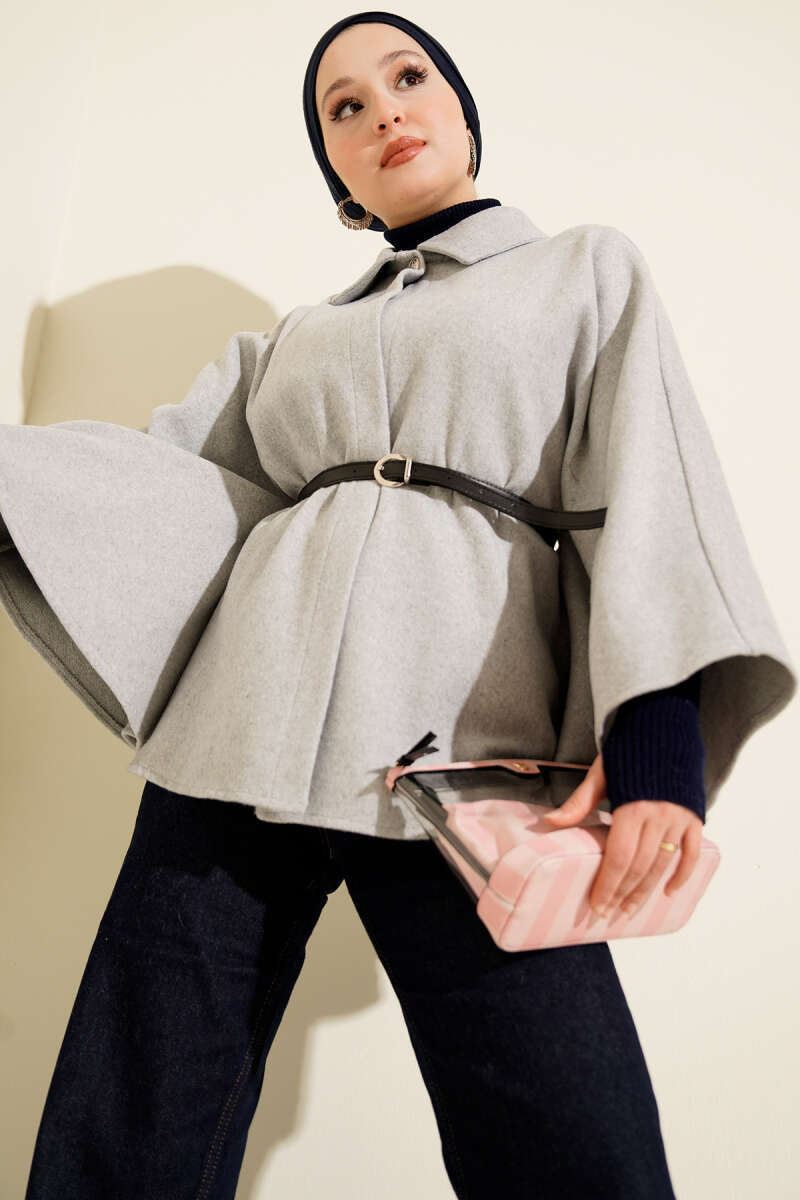 Gömlek Yaka Düğmeli Kaşe Panço Siyah