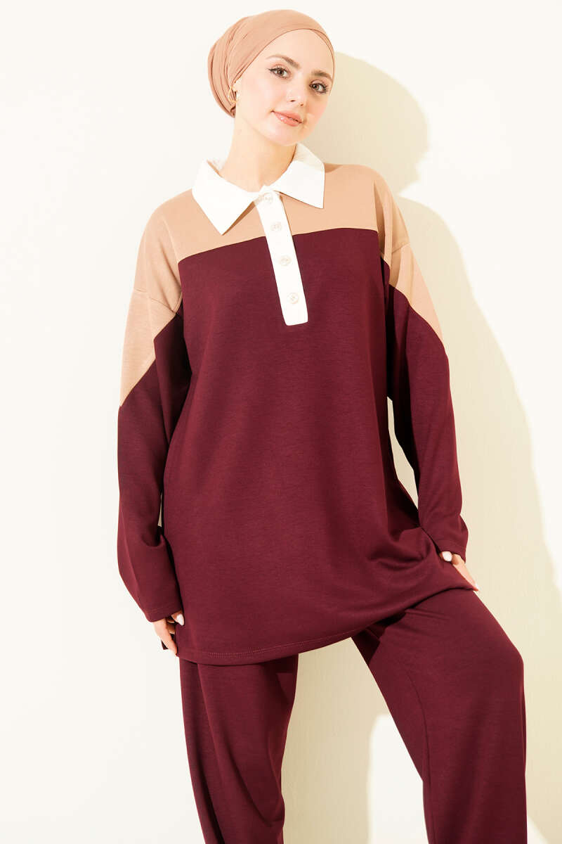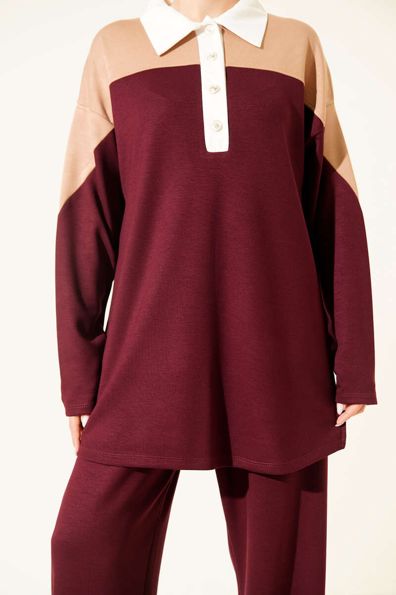 Gömlek Yaka Düğmeli Loyşa İkili Takım Bordo