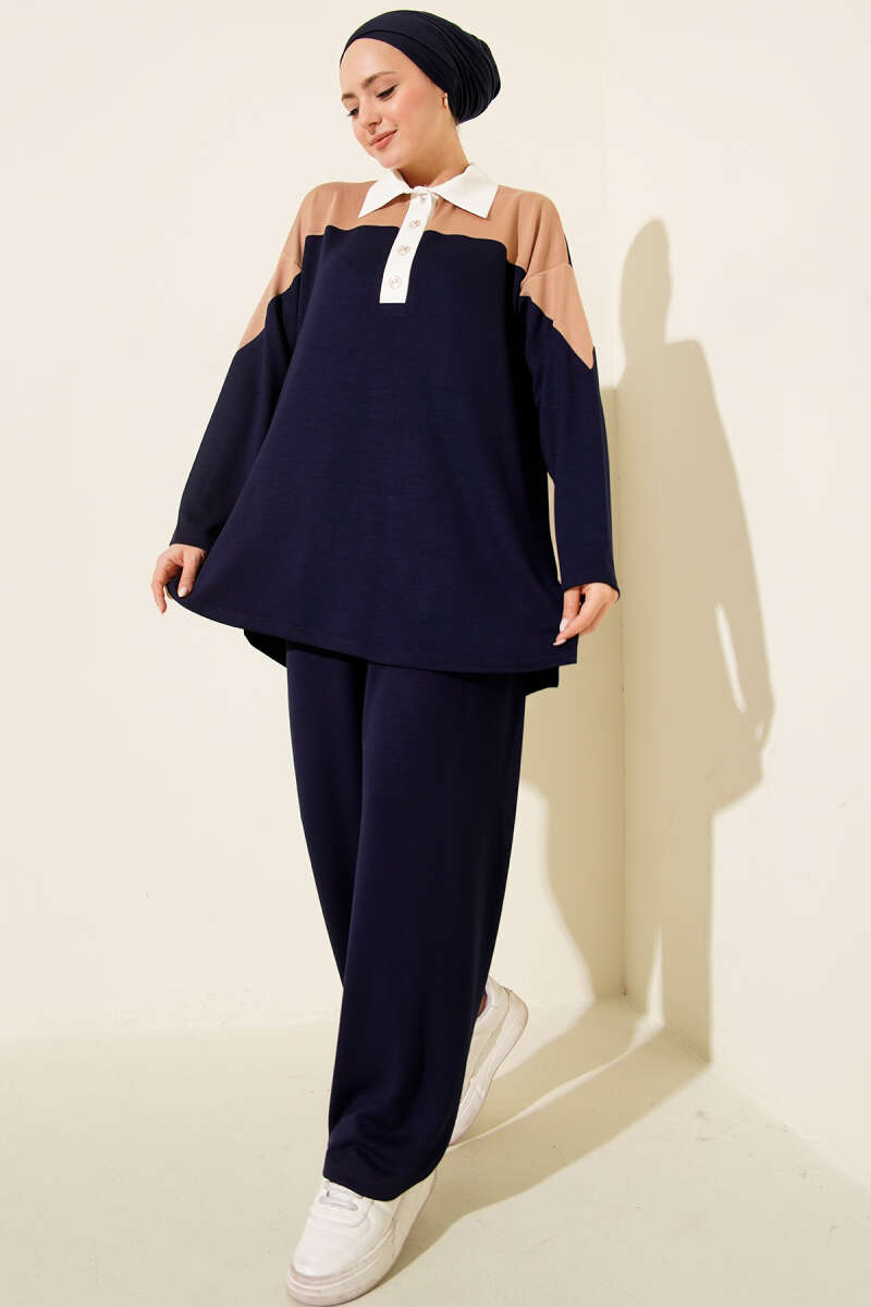 Gömlek Yaka Düğmeli Loyşa İkili Takım Lacivert